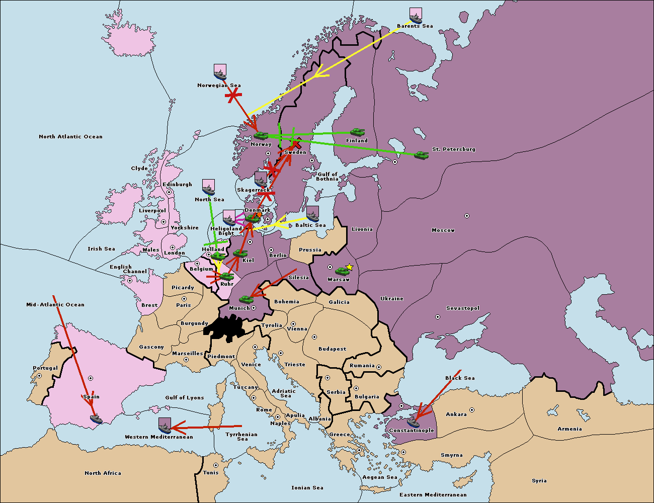 The fleet at Barents Sea move to St. Petersburg (North Coast).