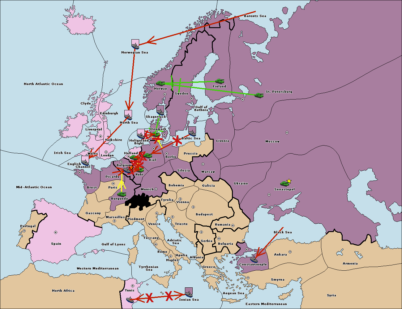The fleet at St. Petersburg (North Coast) move to Barents Sea.