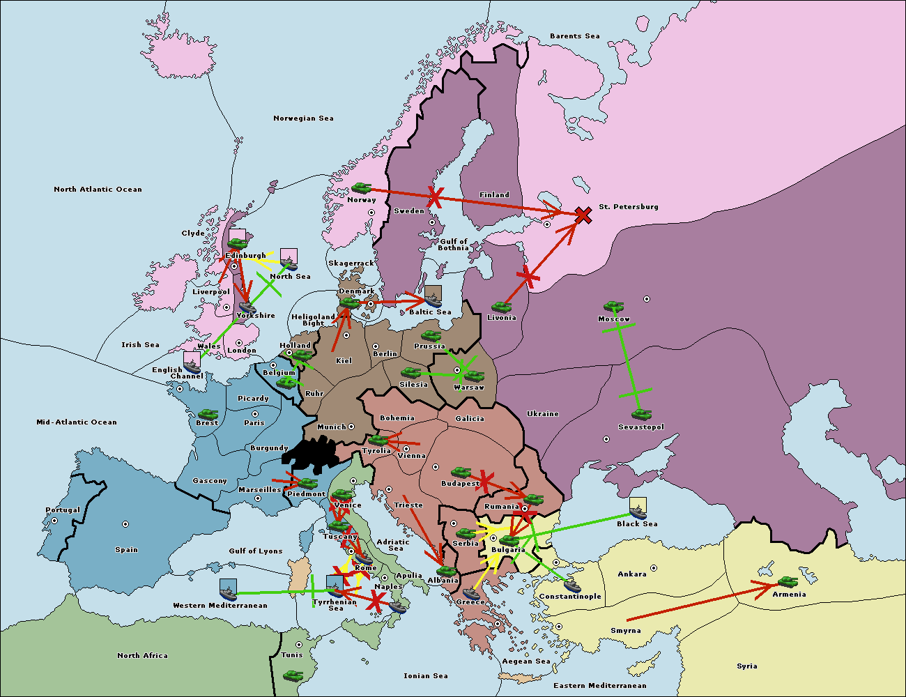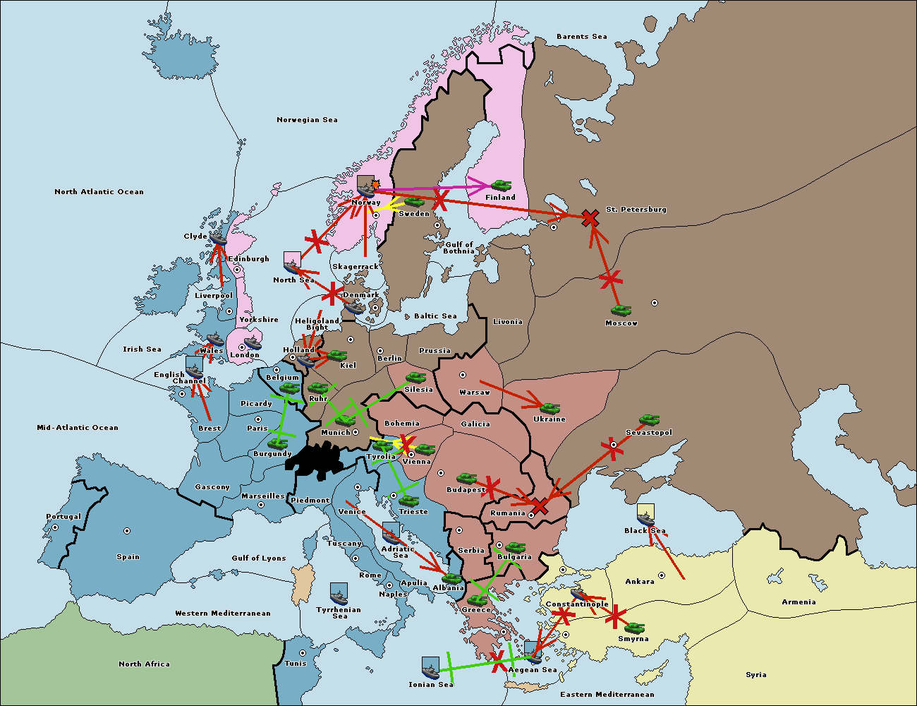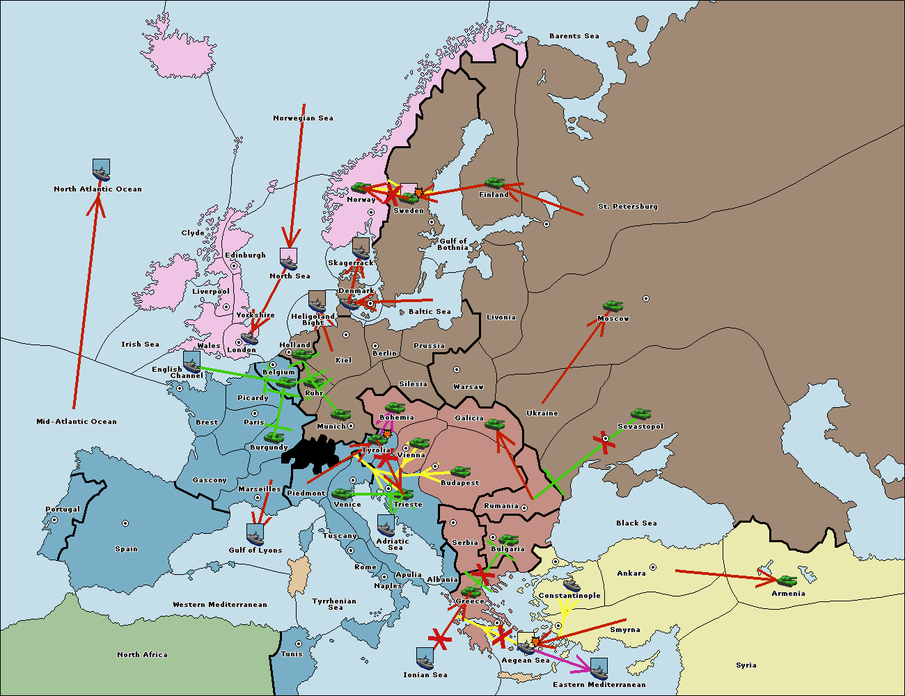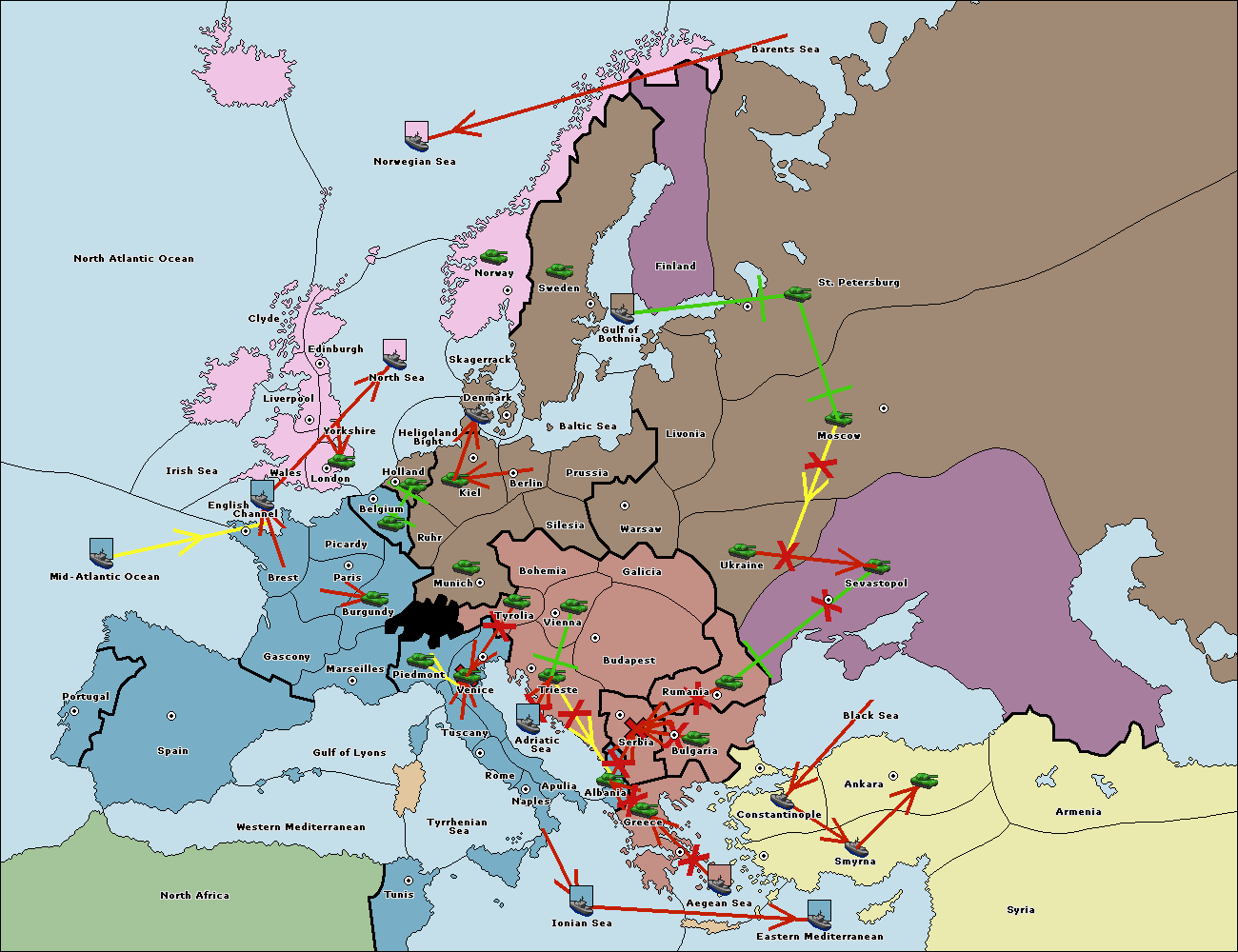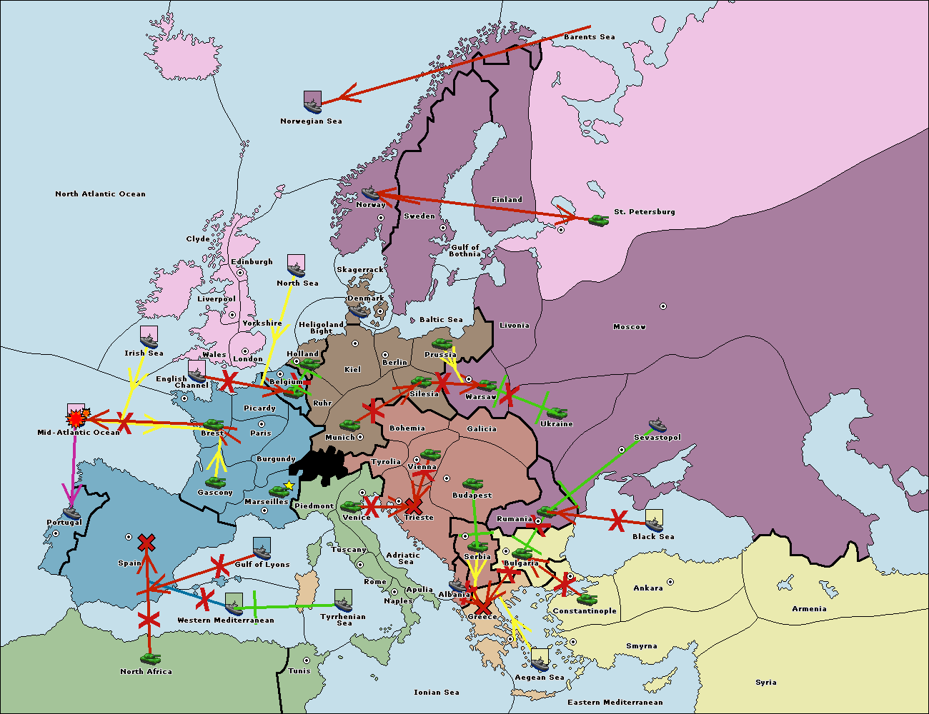 The fleet at Mid-Atlantic Ocean move to Western Mediterranean.