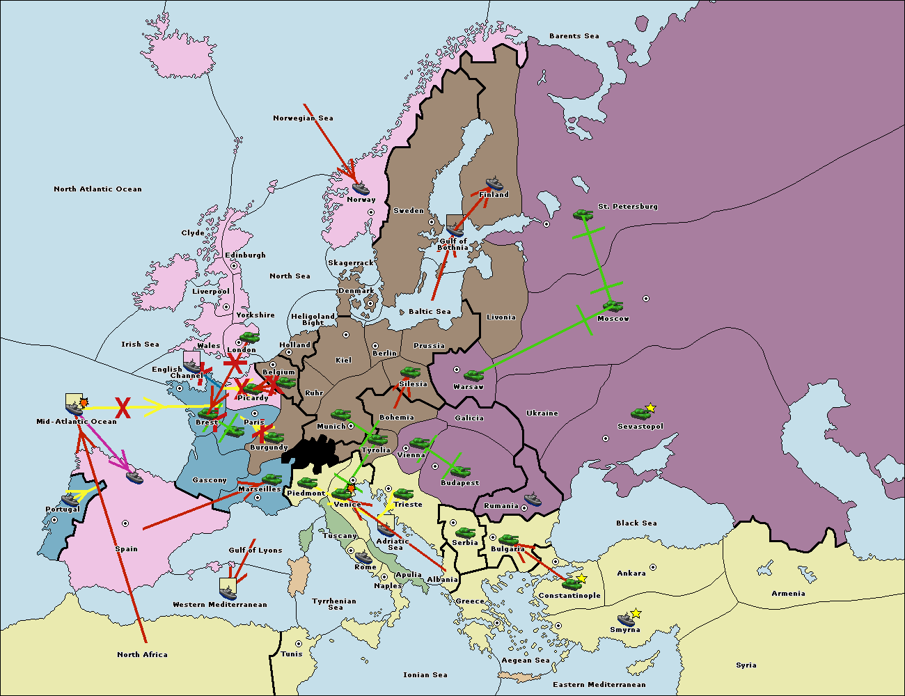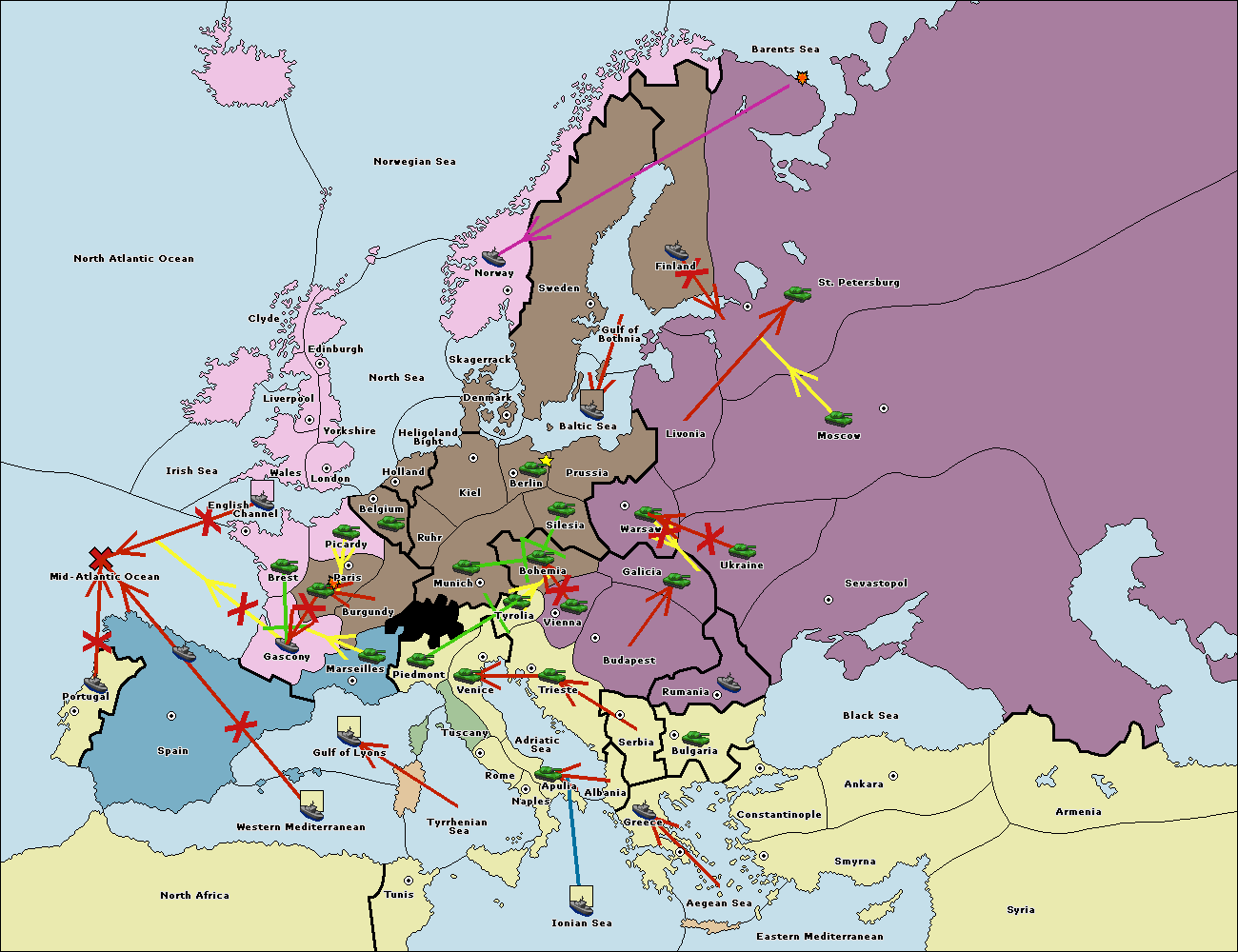 The fleet at Bulgaria (South Coast) move to Aegean Sea.