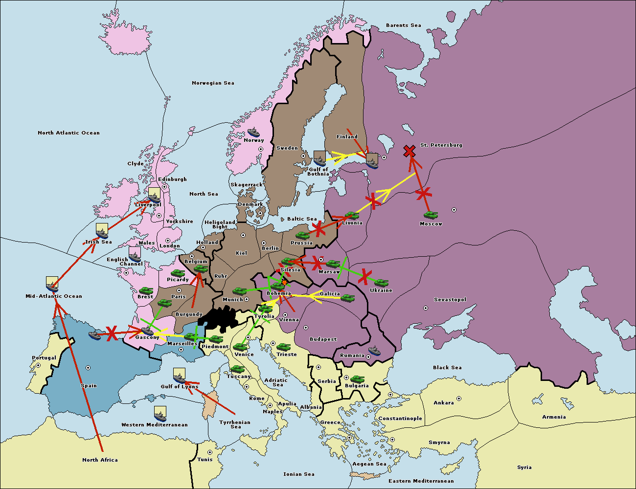 The fleet at St. Petersburg (South Coast) move to Livonia.