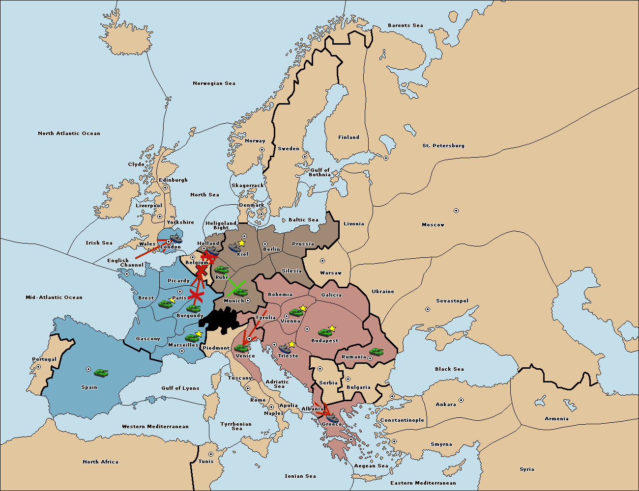 The fleet at Trieste move to Albania.