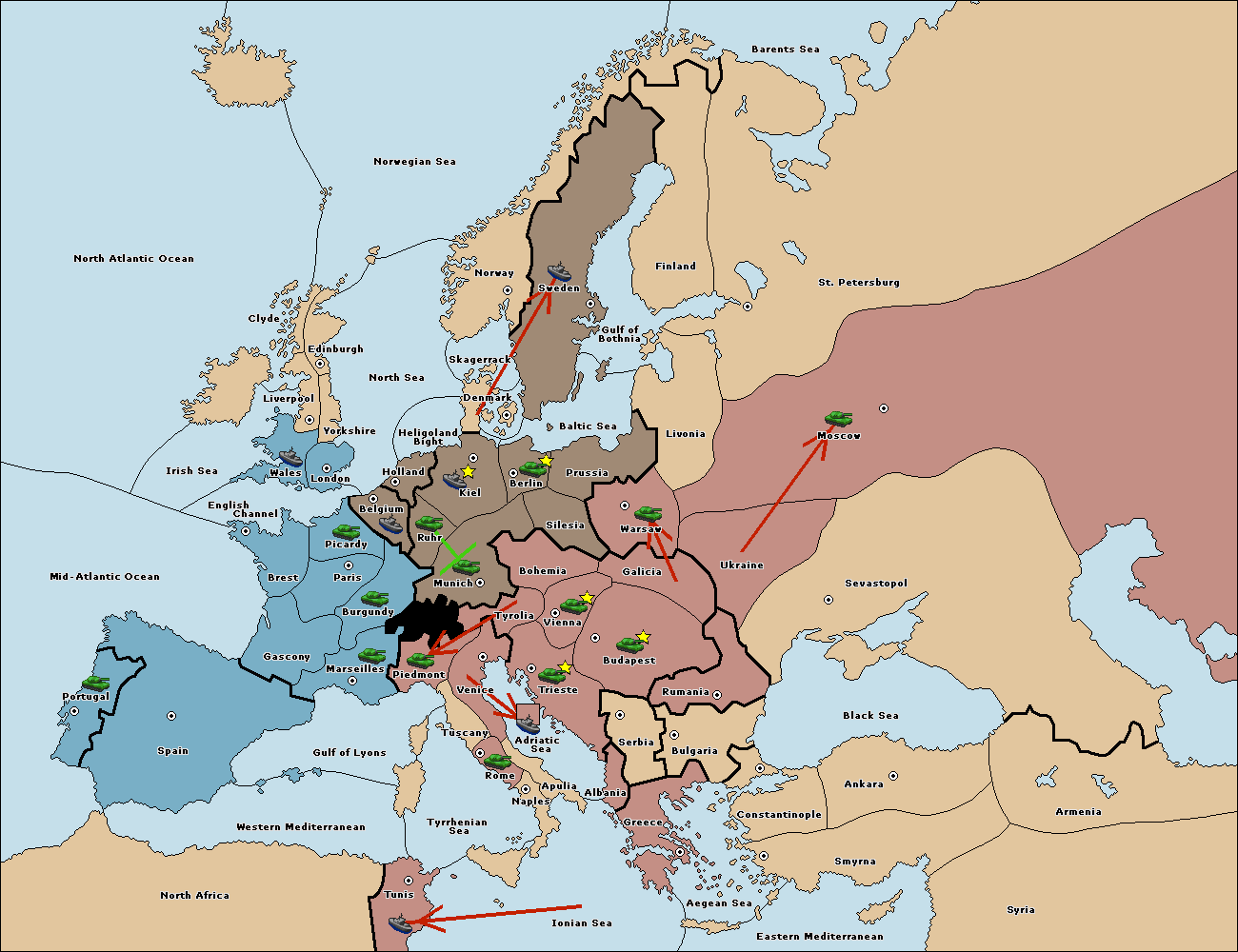 The army at Munich move to Burgundy.