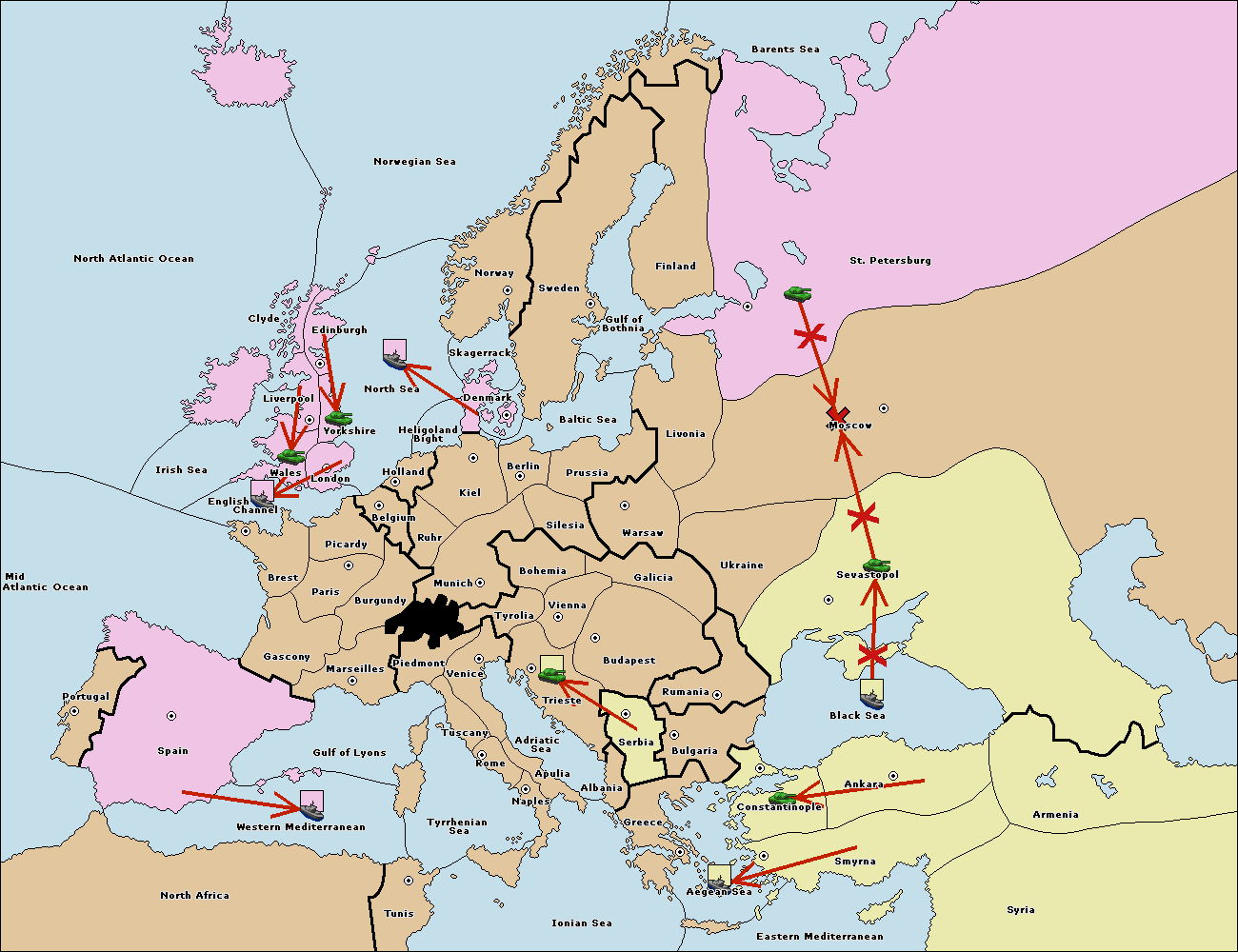 The fleet at Spain (South Coast) move to Western Mediterranean.