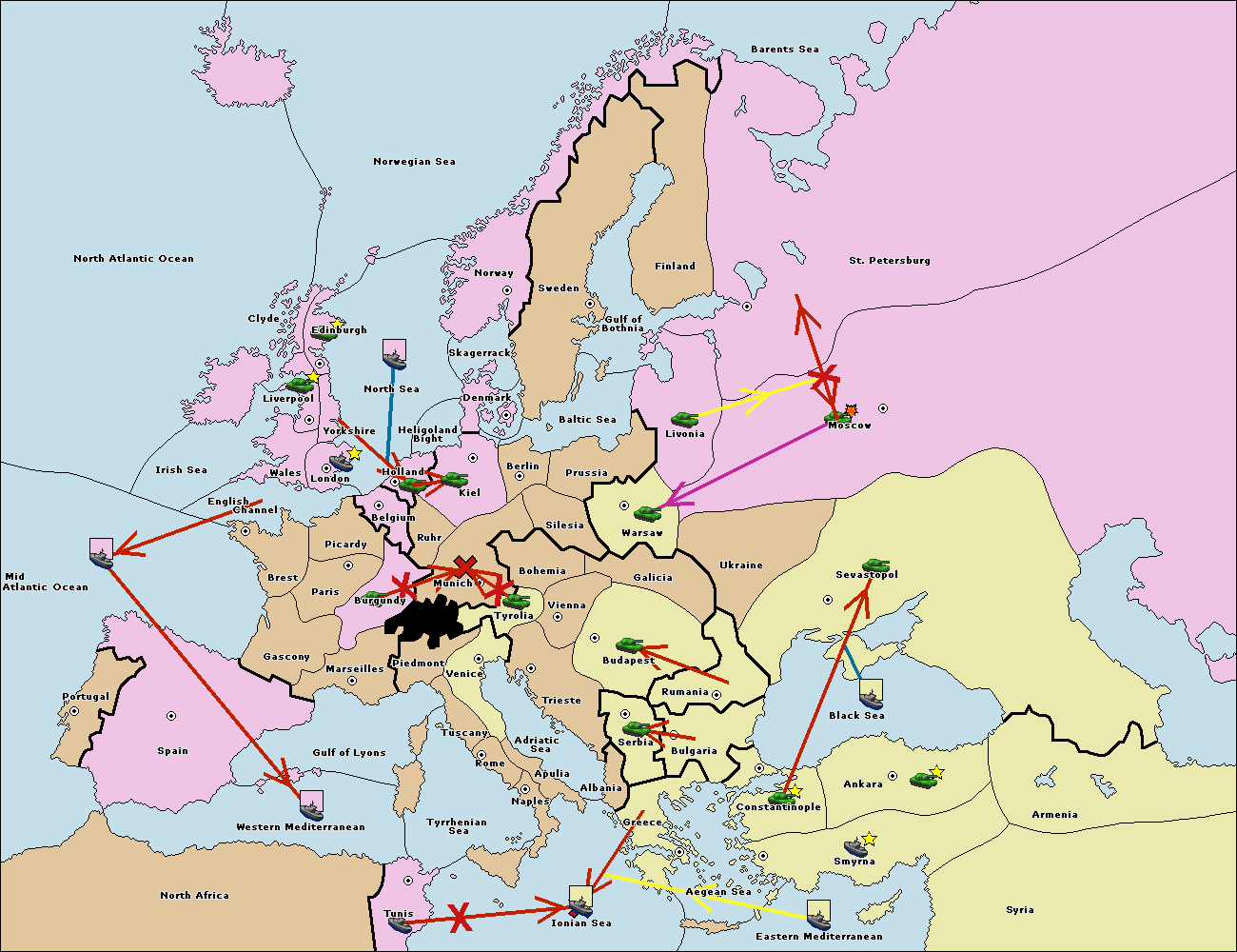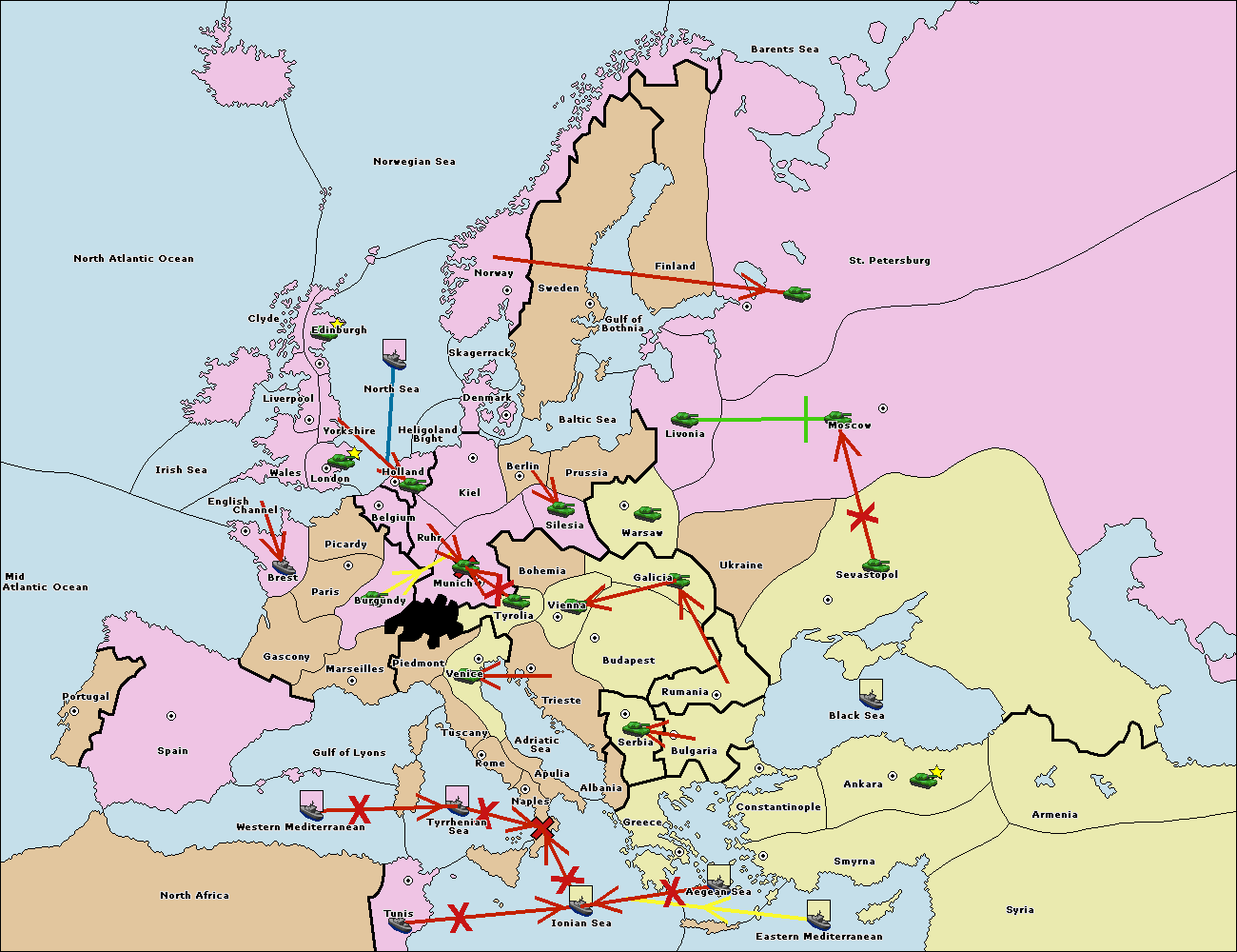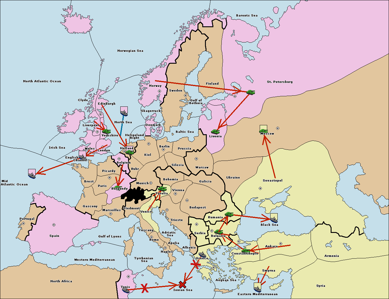 The fleet at Naples support move to Ionian Sea from Tunis.