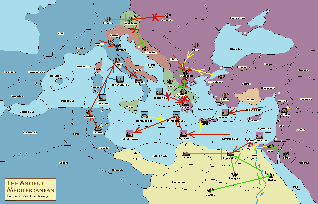 The fleet at Minoan Sea support move to Crete from Egyptian Sea.