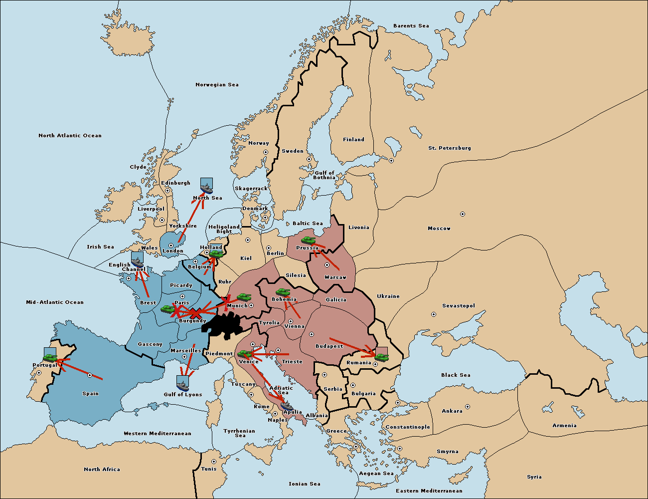 The fleet at Gulf of Lyons support move to Marseilles from Piedmont.