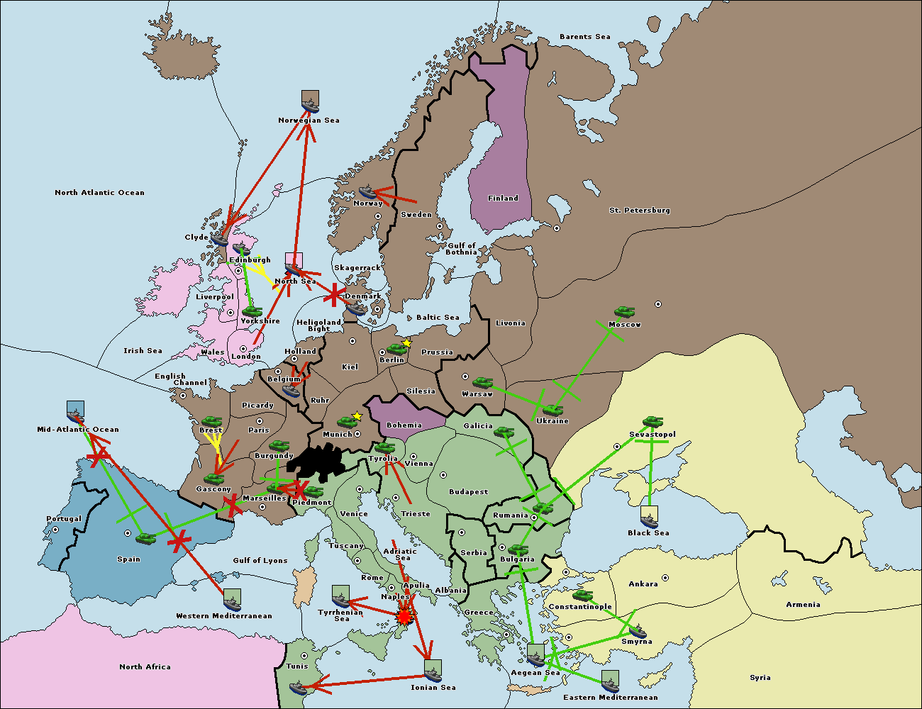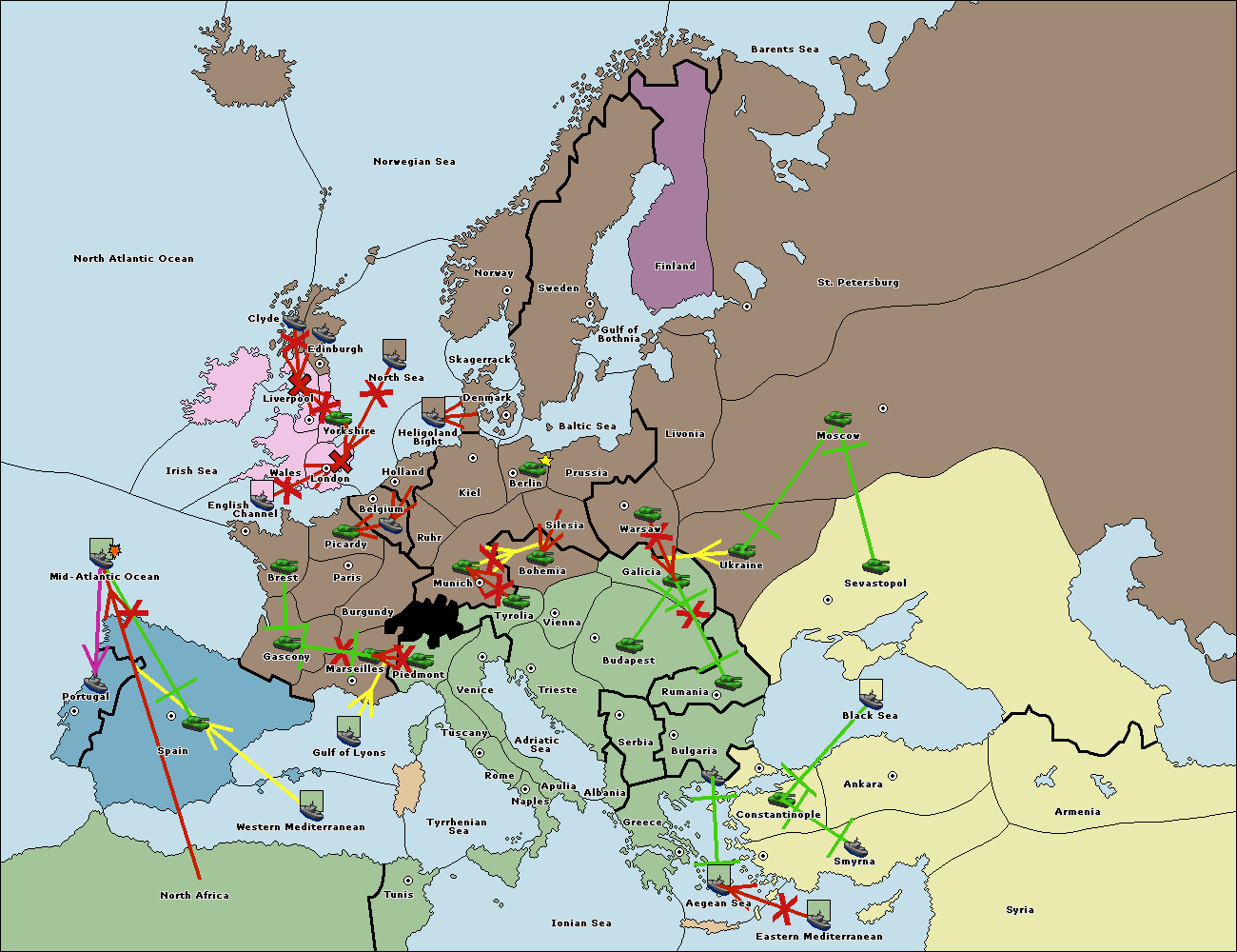 The fleet at Spain (South Coast) support move to Marseilles from Gulf of Lyons.