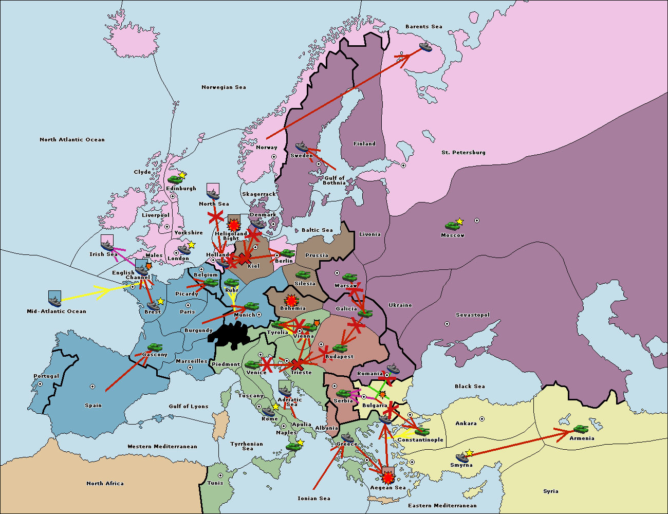 The fleet at Mid-Atlantic Ocean move to Western Mediterranean.