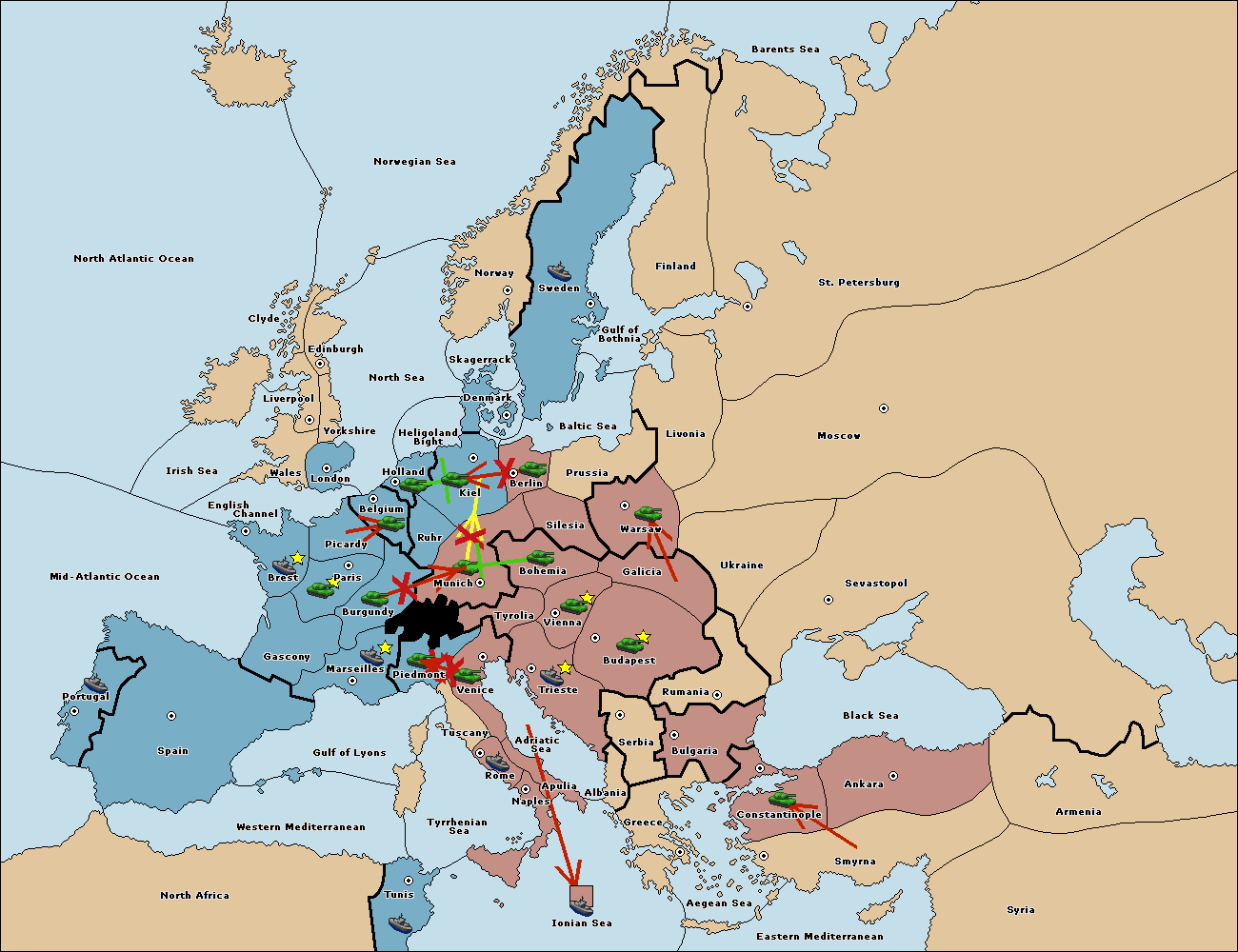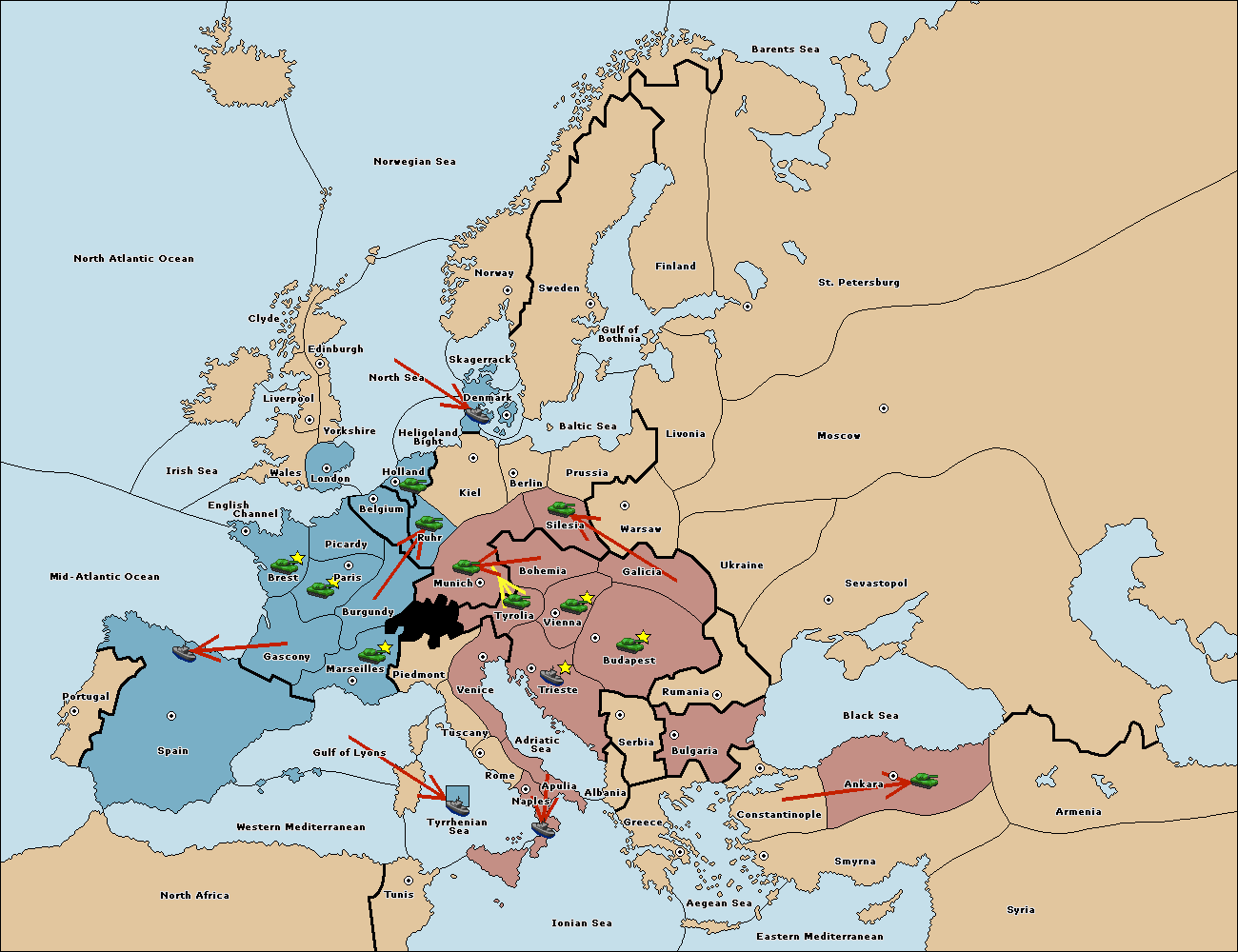 The fleet at Ionian Sea support move to Tunis from Tyrrhenian Sea.