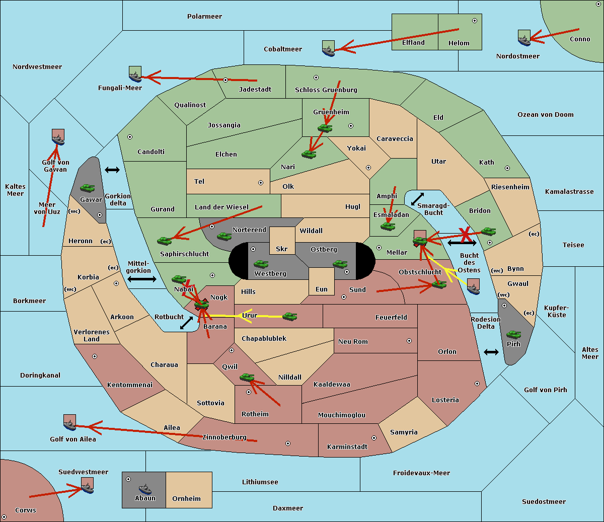 The fleet at Schloss Gruenburg move to Ozean von Doom.