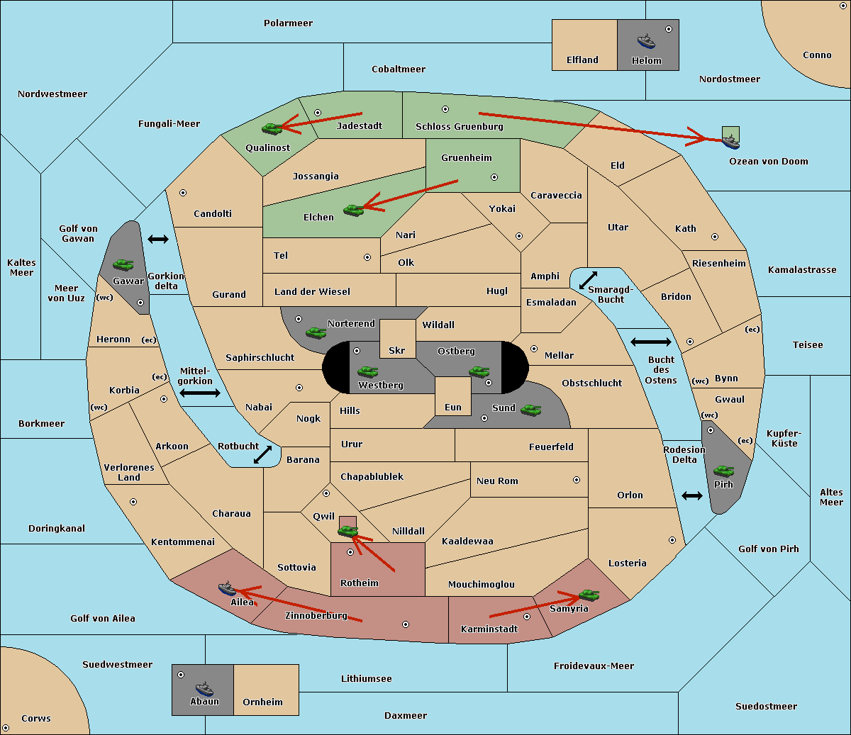 The army at Verlorenes Land move to Arkoon.
