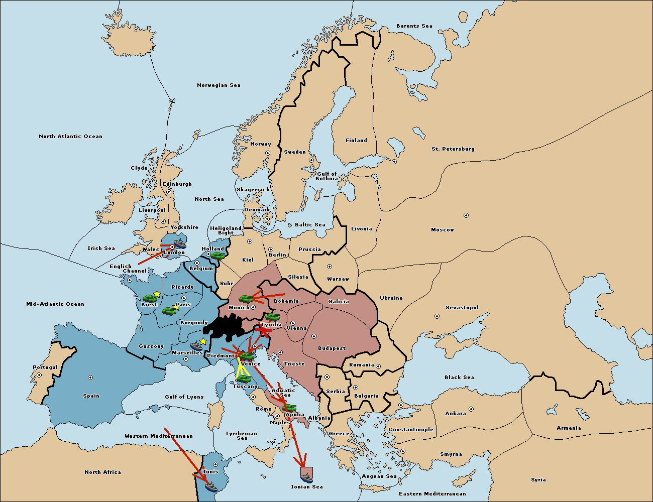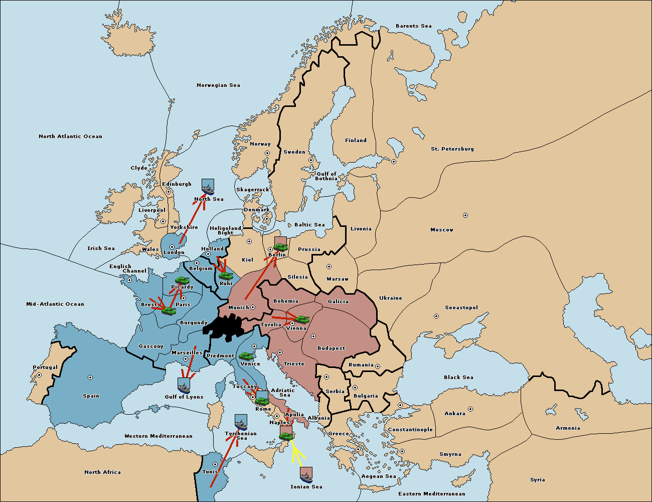 The fleet at Spain (South Coast) move to Western Mediterranean.