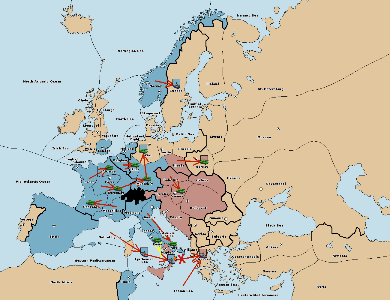 The fleet at Ionian Sea support hold to Naples.