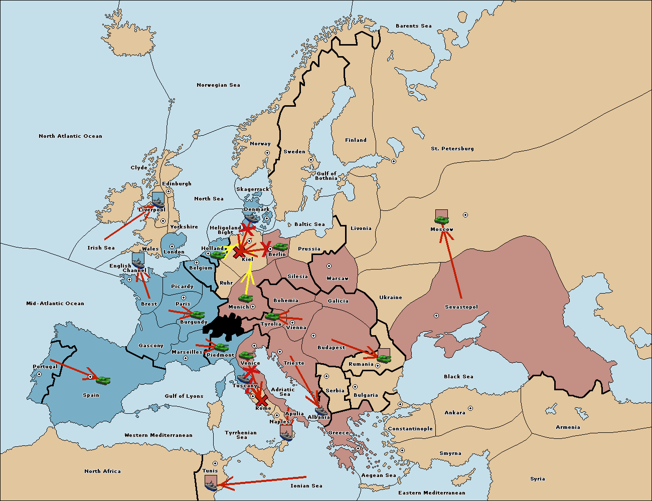 The fleet at Tuscany move to Tyrrhenian Sea.