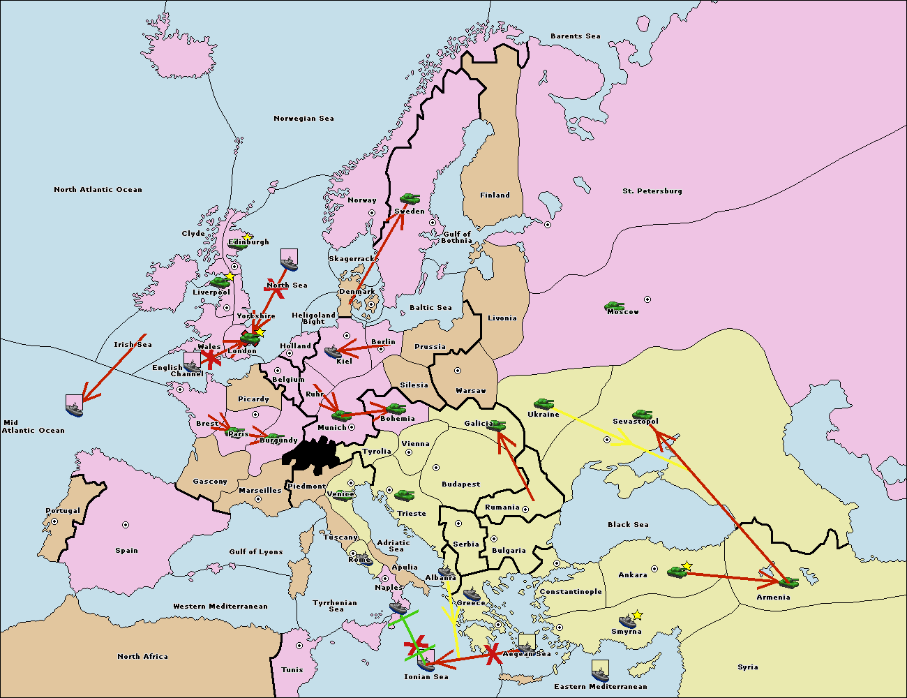 The fleet at Mid-Atlantic Ocean move to Western Mediterranean.