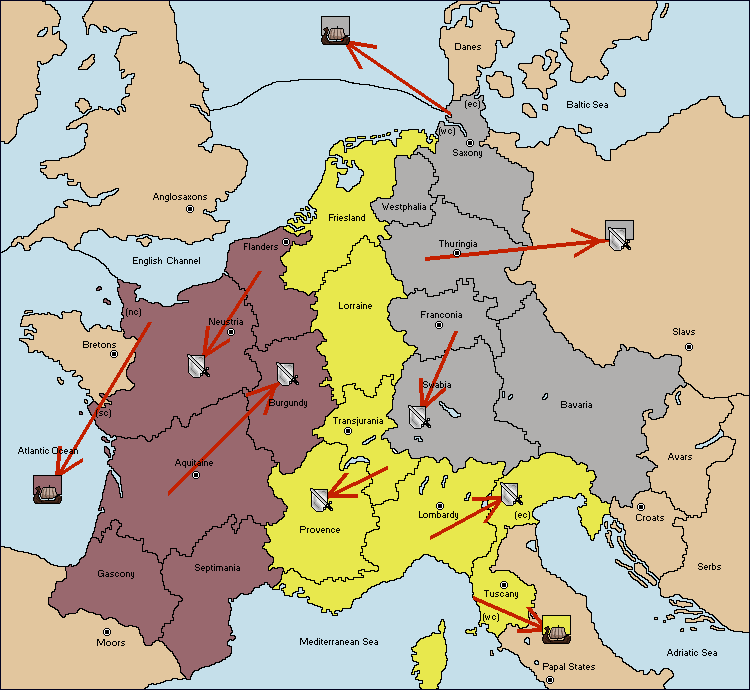 The army at Aquitaine support move to Burgundy from Provence.