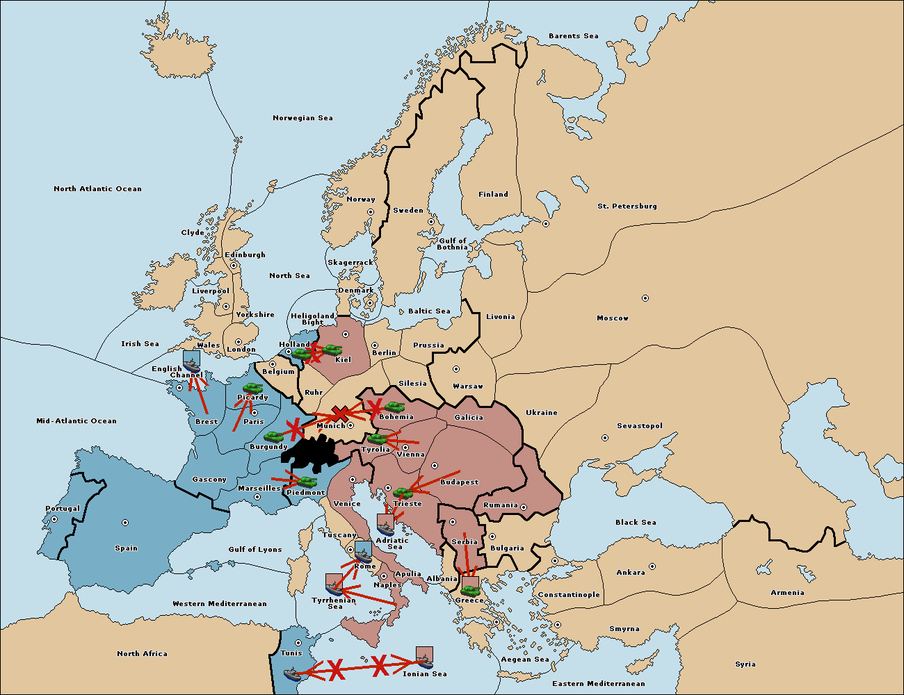 The army at Tyrolia move to Munich.