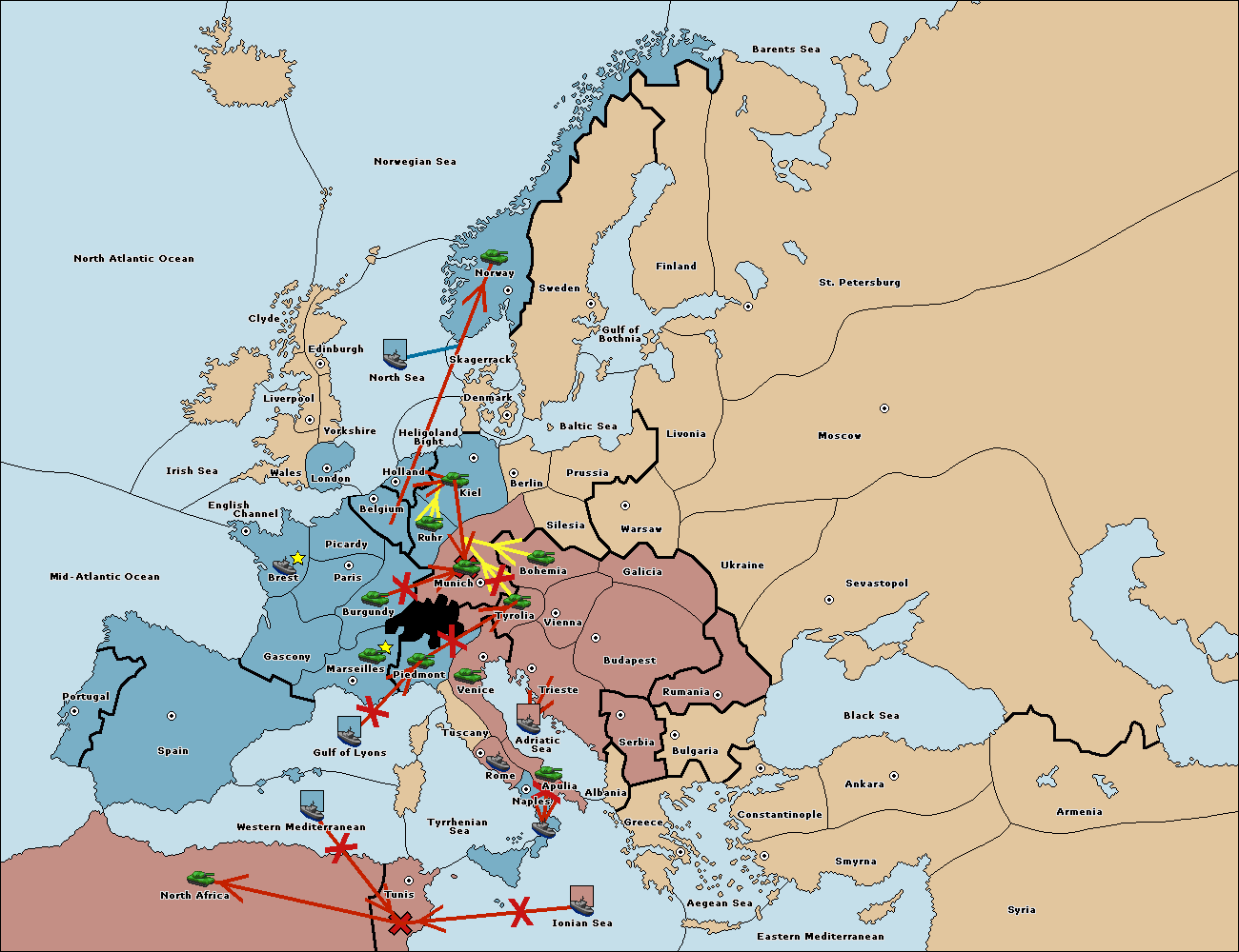 The army at Tyrolia support move to Munich from Kiel.