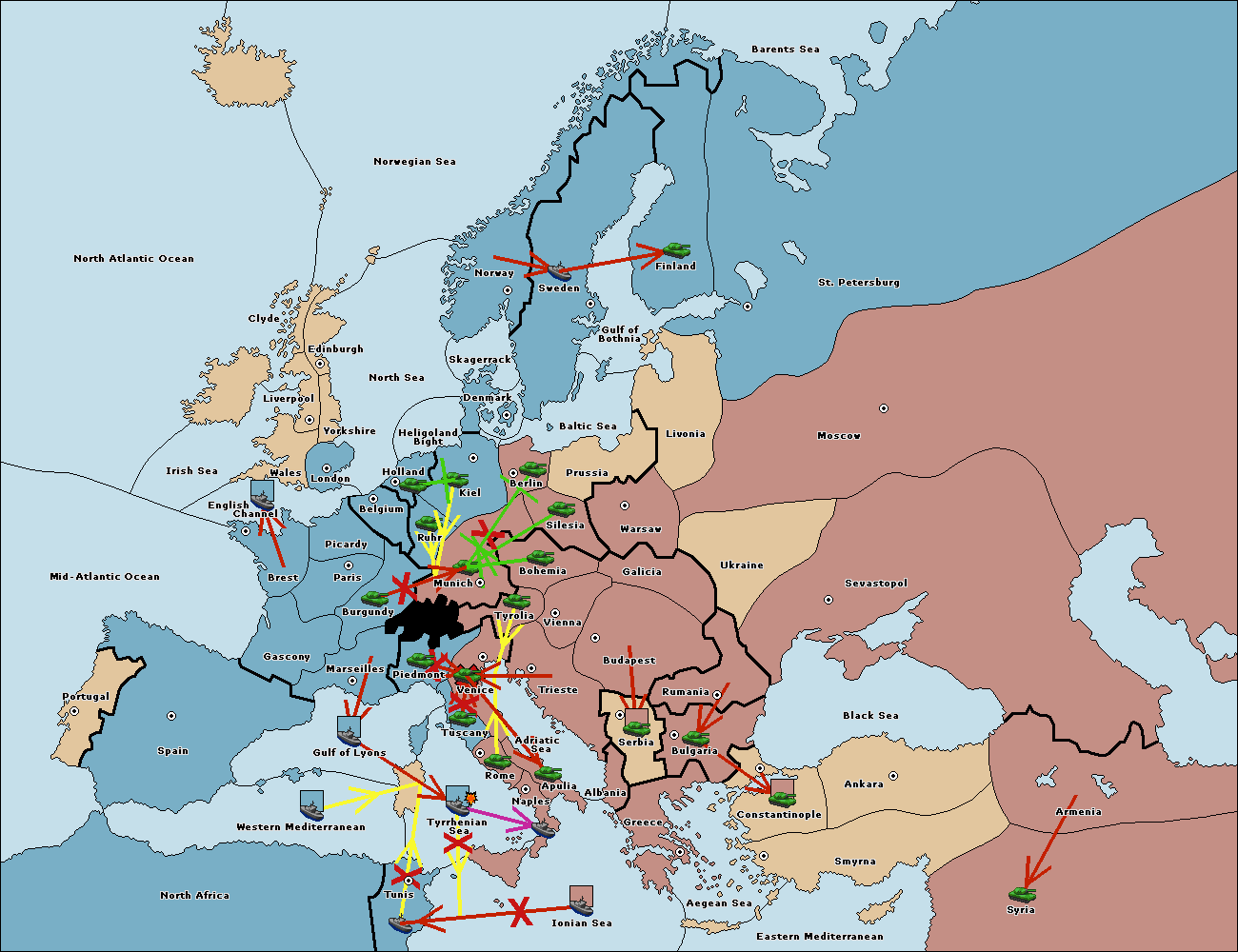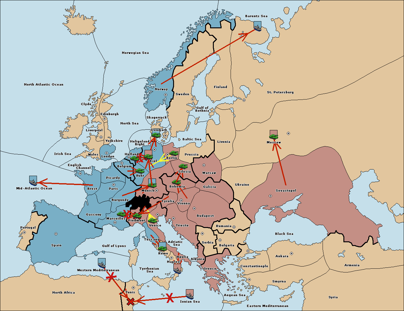 The army at Kiel support move to Munich from Tyrolia.
