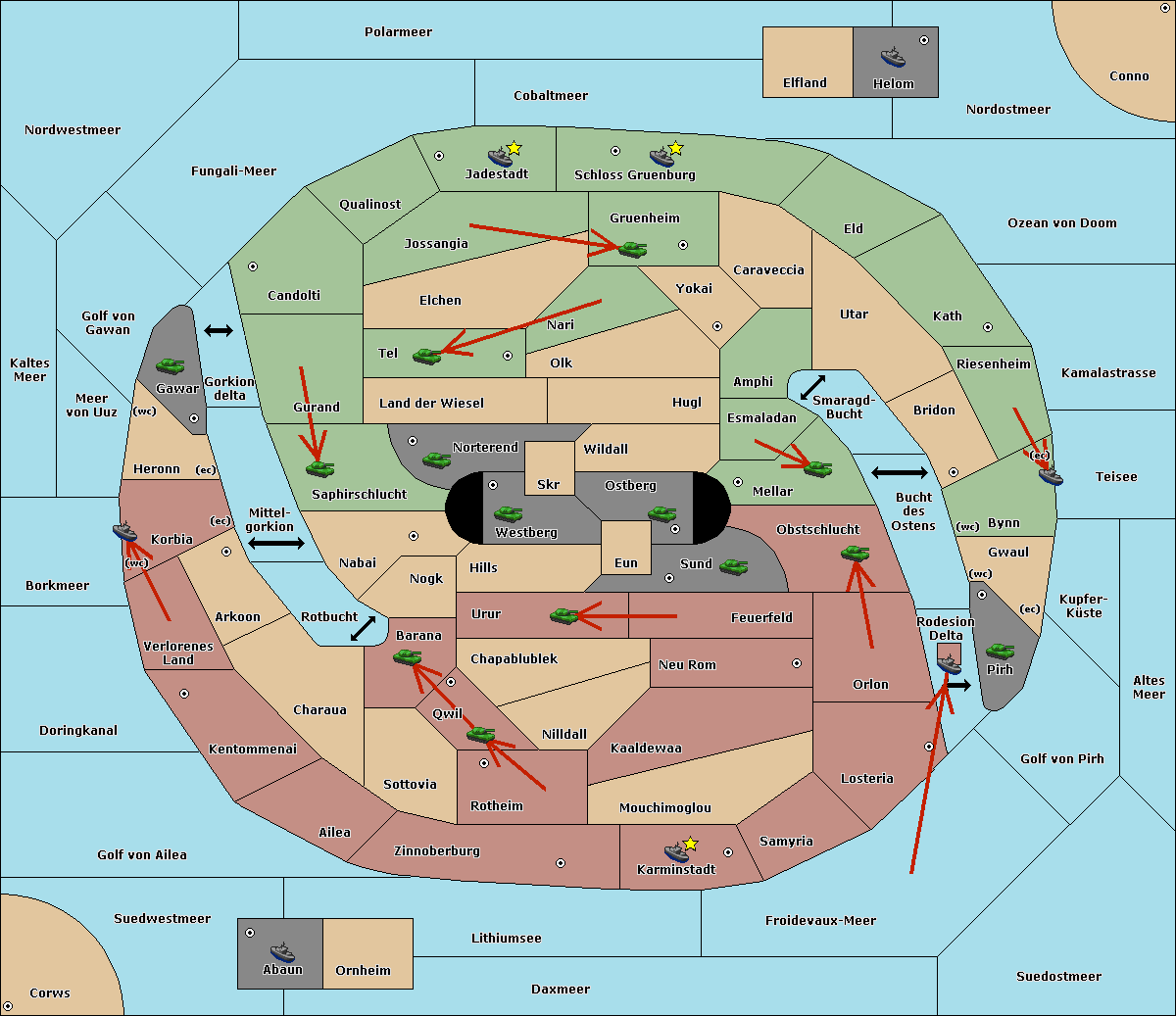 The fleet at Schloss Gruenburg move to Ozean von Doom.
