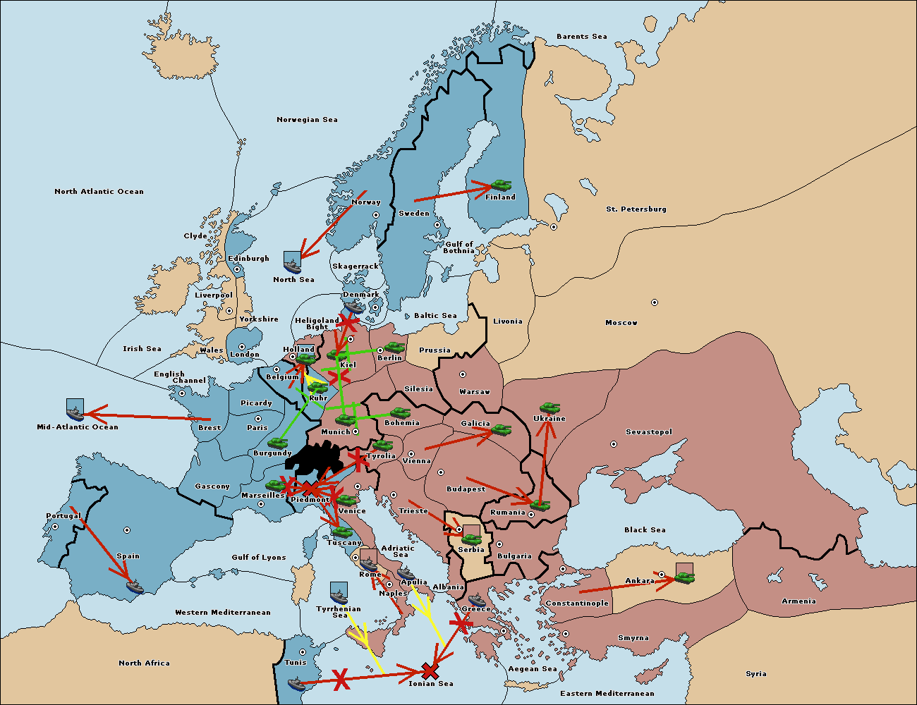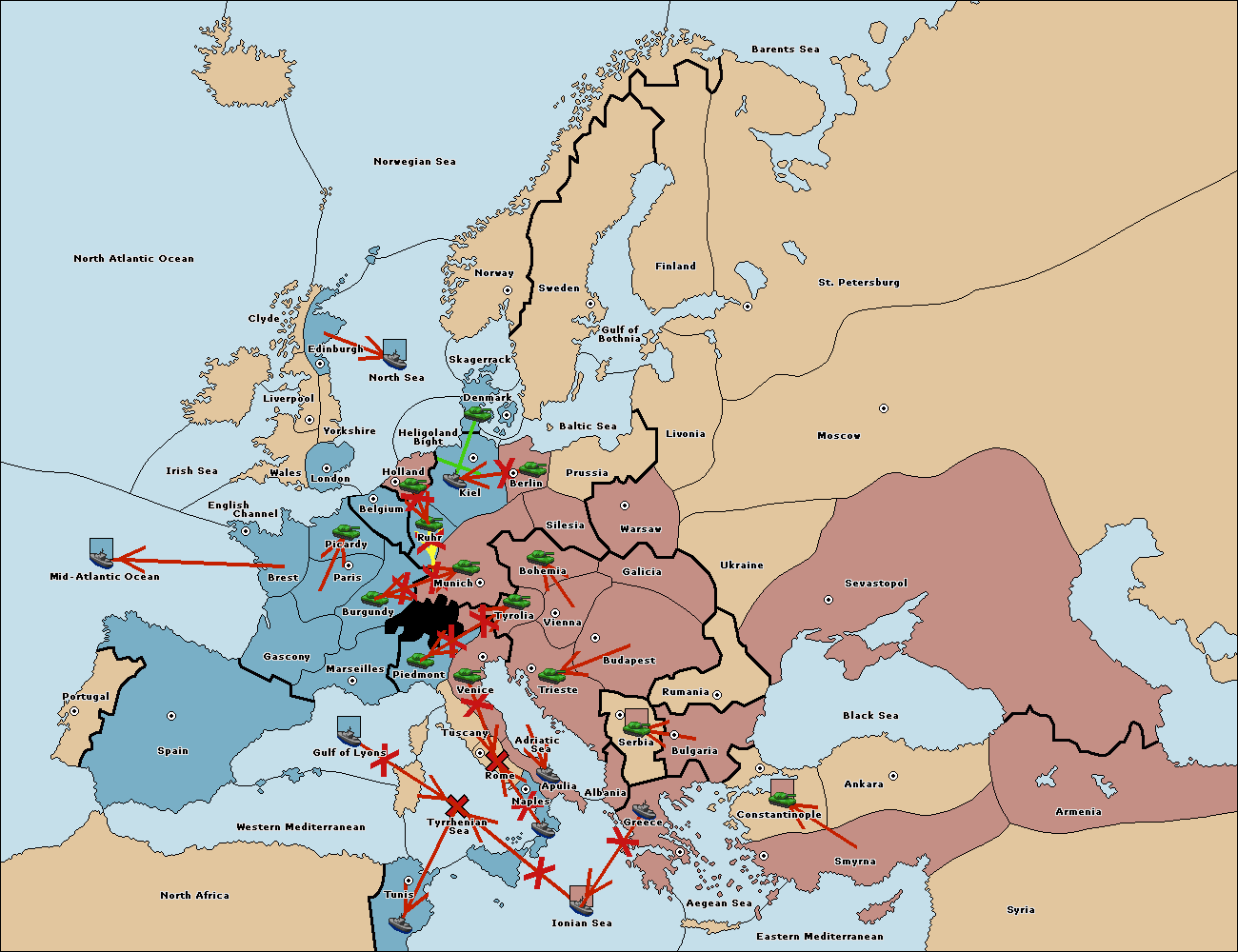 The fleet at Mid-Atlantic Ocean move to Western Mediterranean.