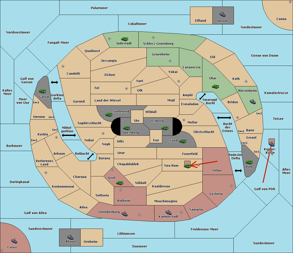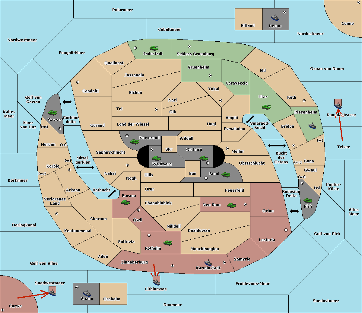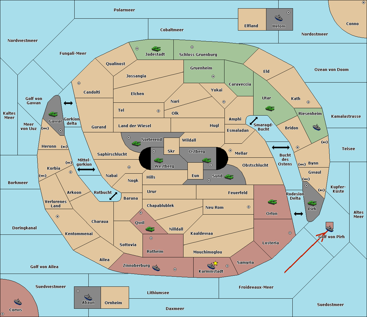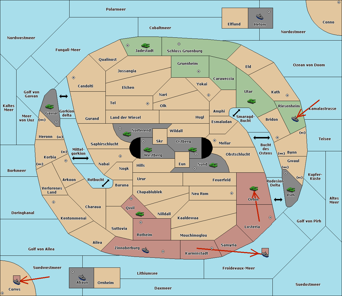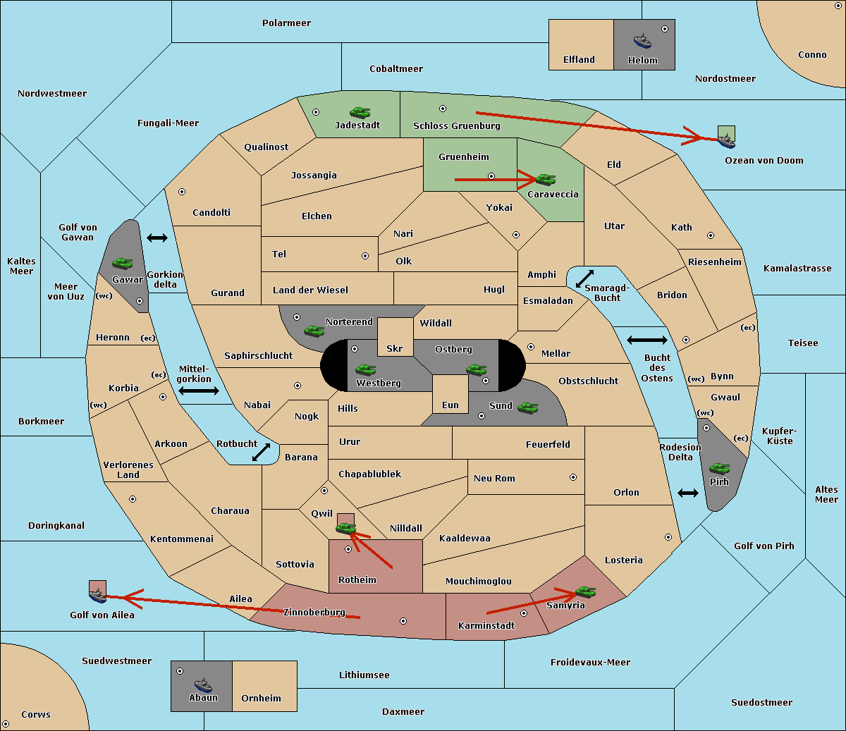 The fleet at Schloss Gruenburg move to Ozean von Doom.