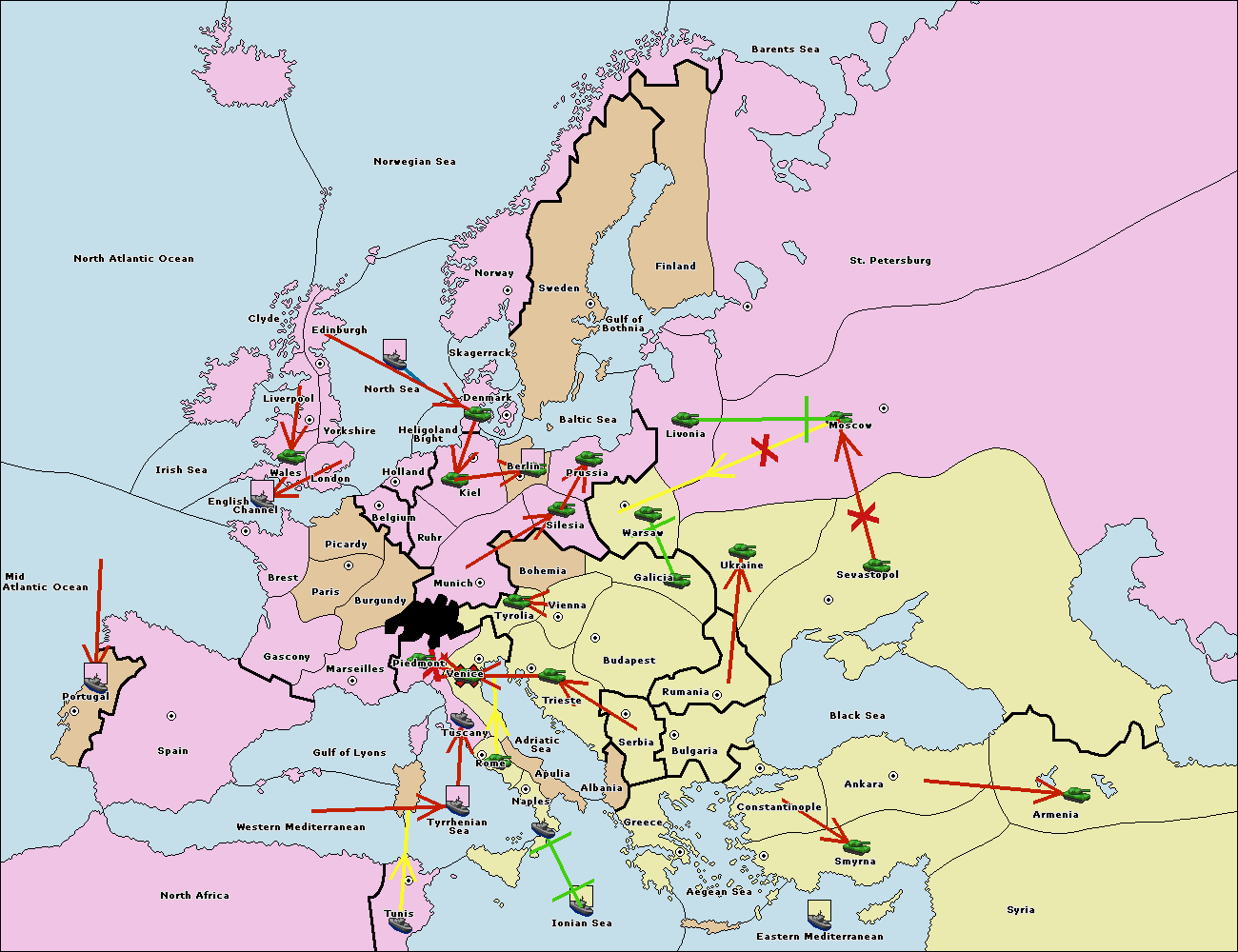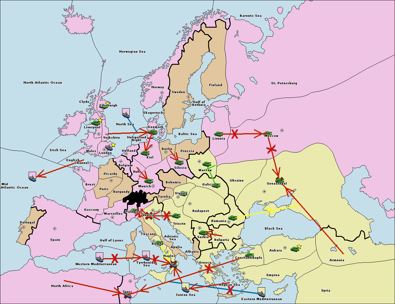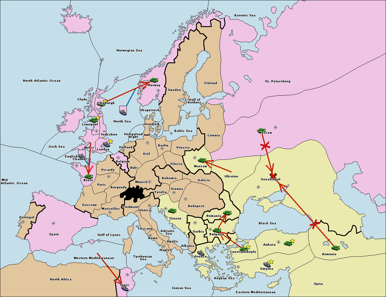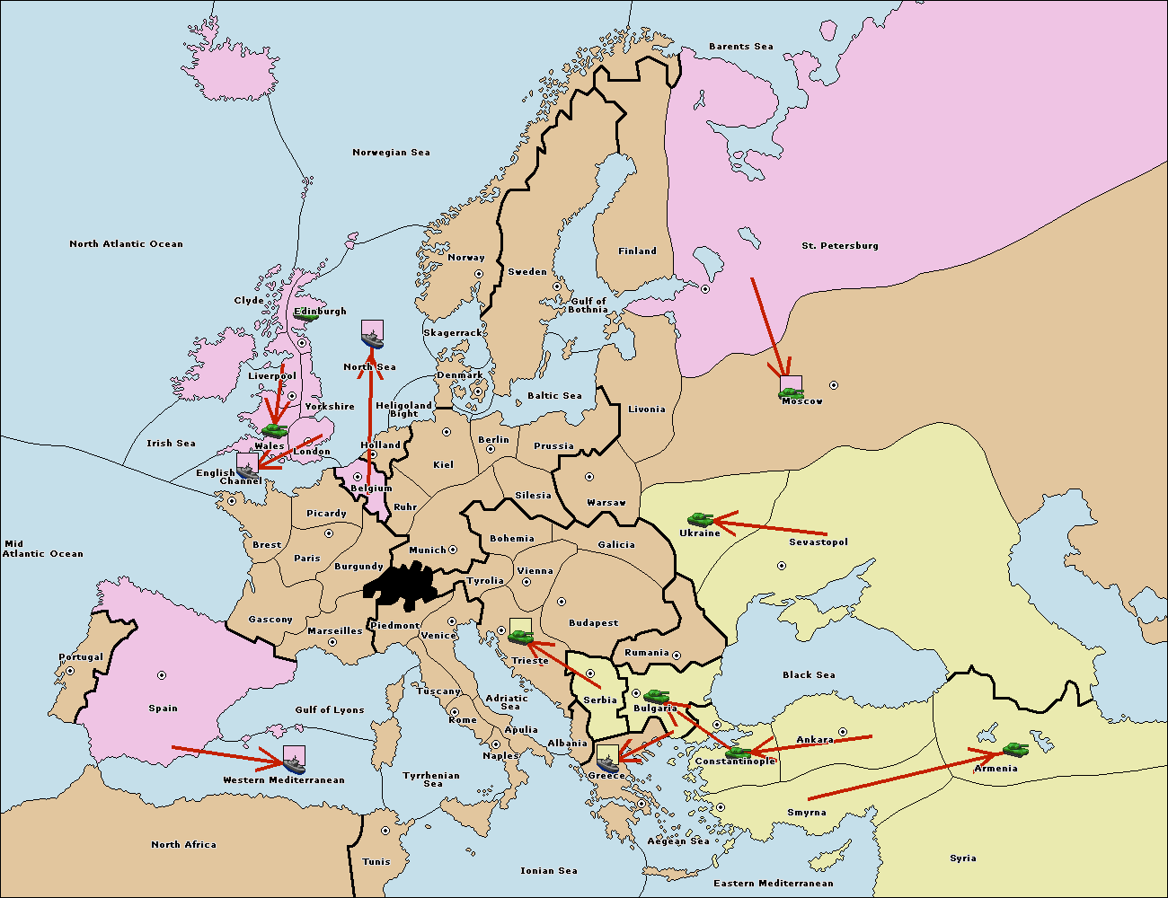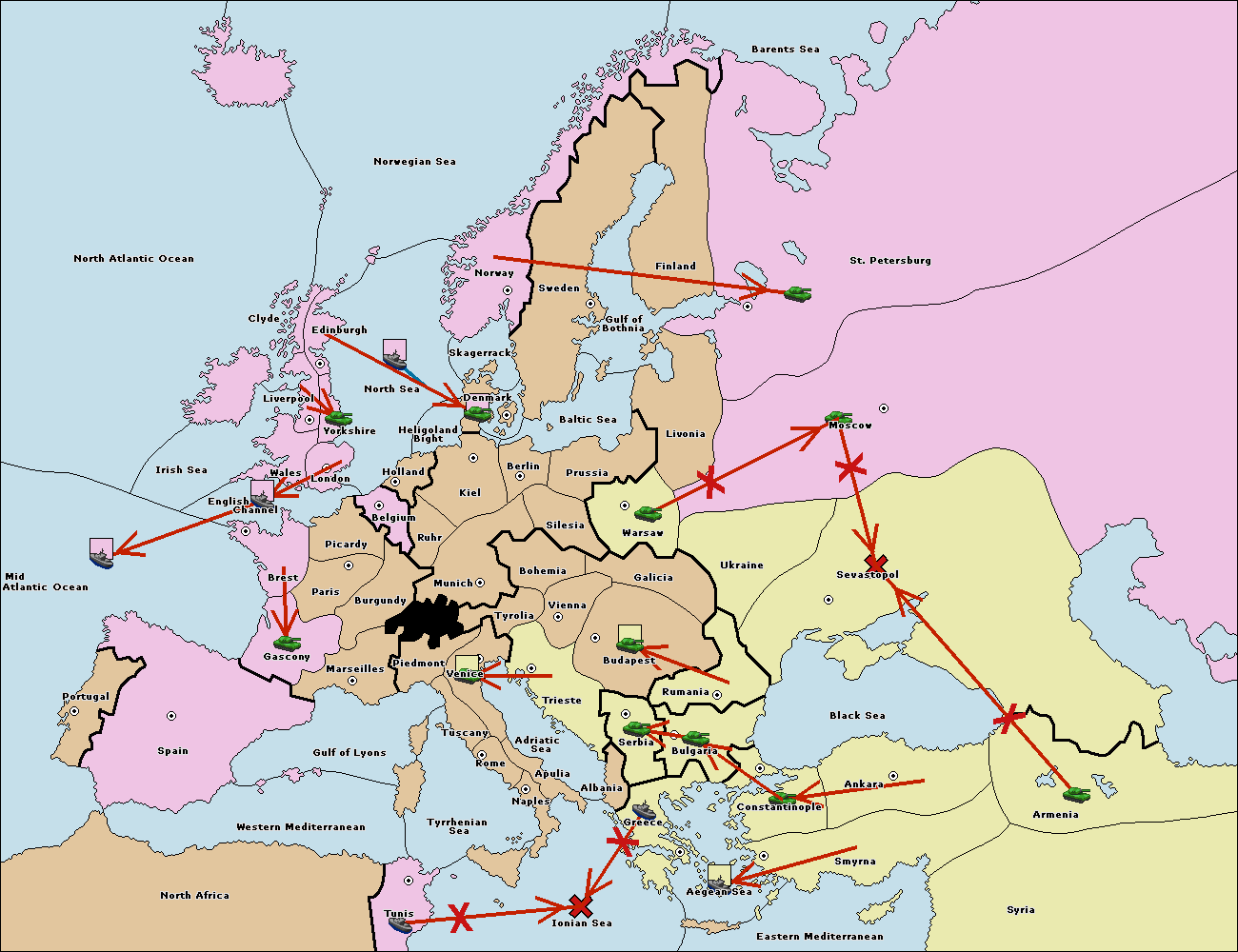 The fleet at Bulgaria (South Coast) move to Greece.