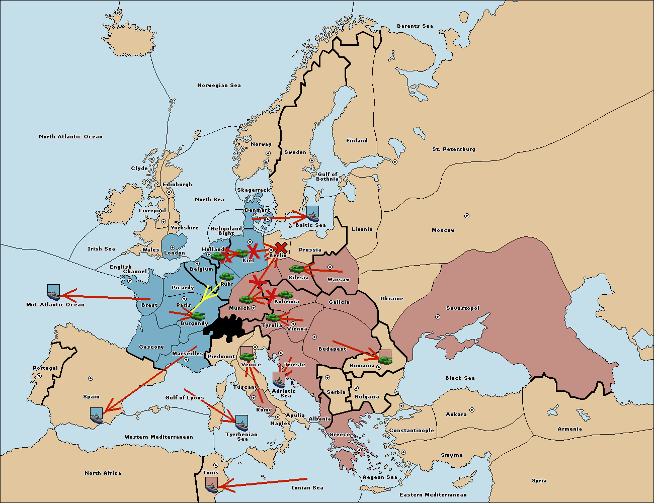 The fleet at Spain (South Coast) support move to Western Mediterranean from Mid-Atlantic Ocean.