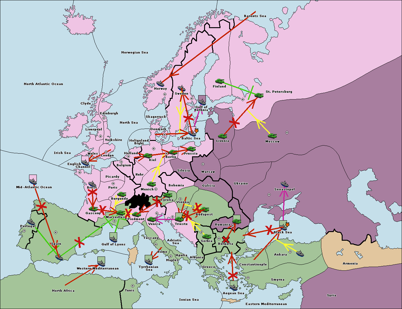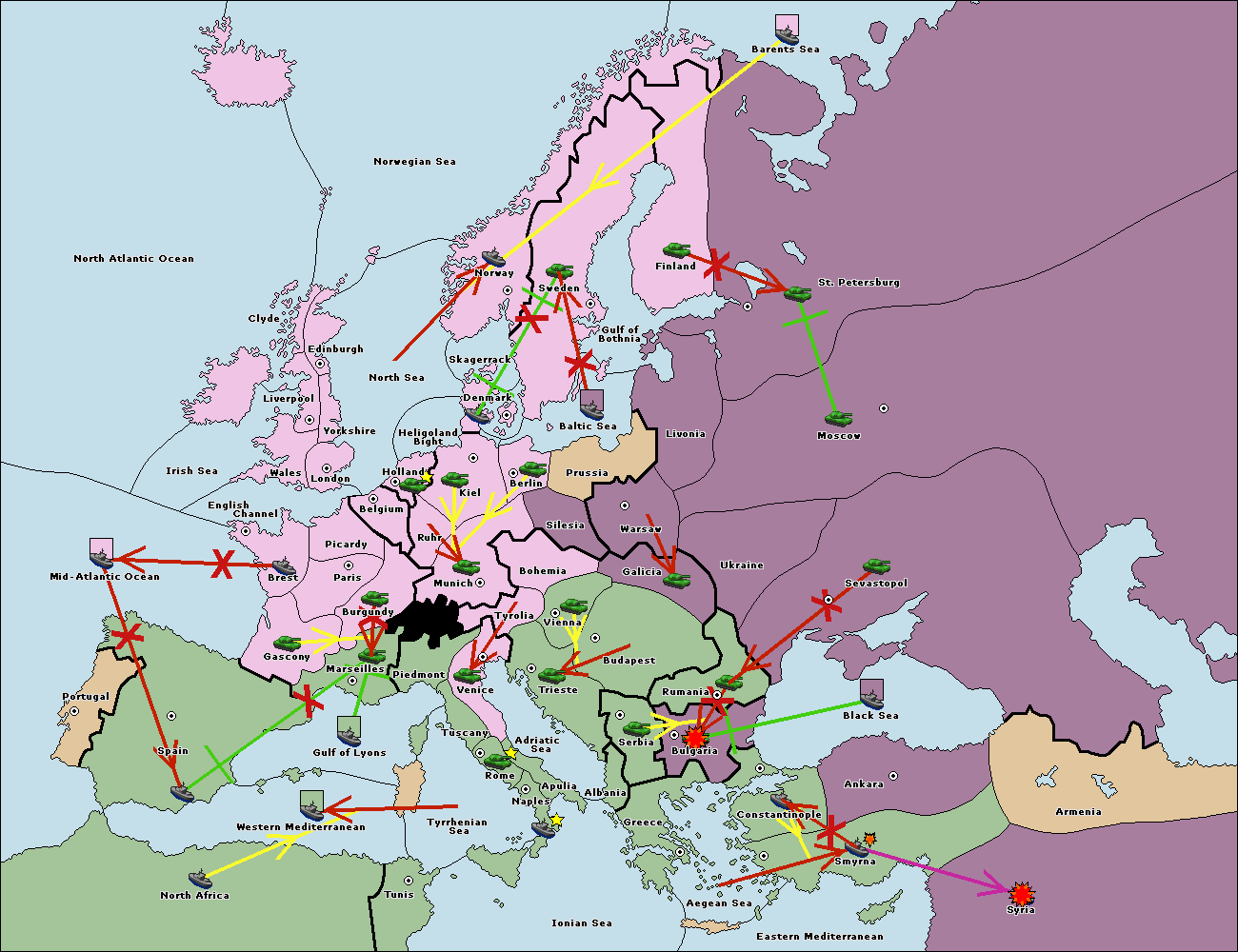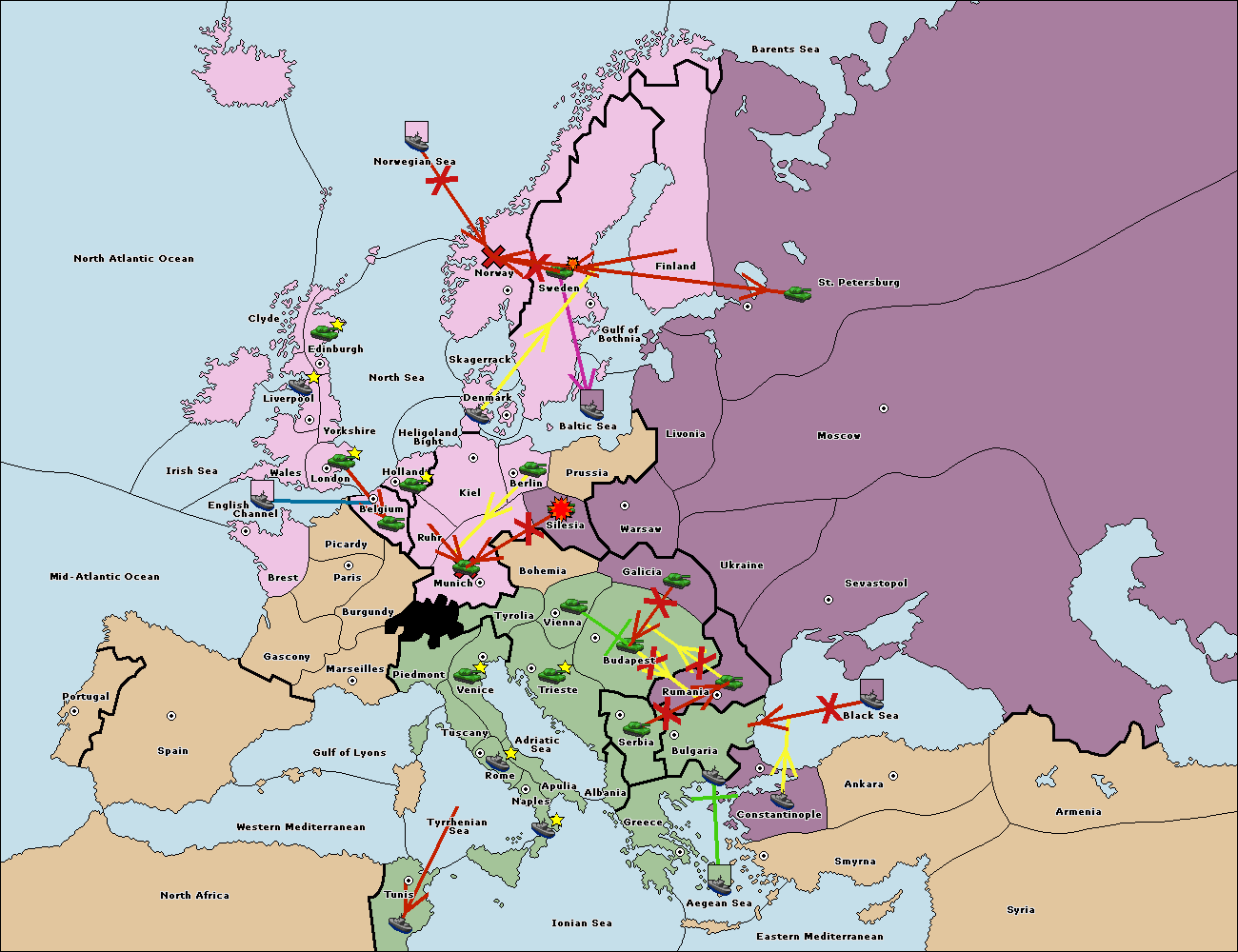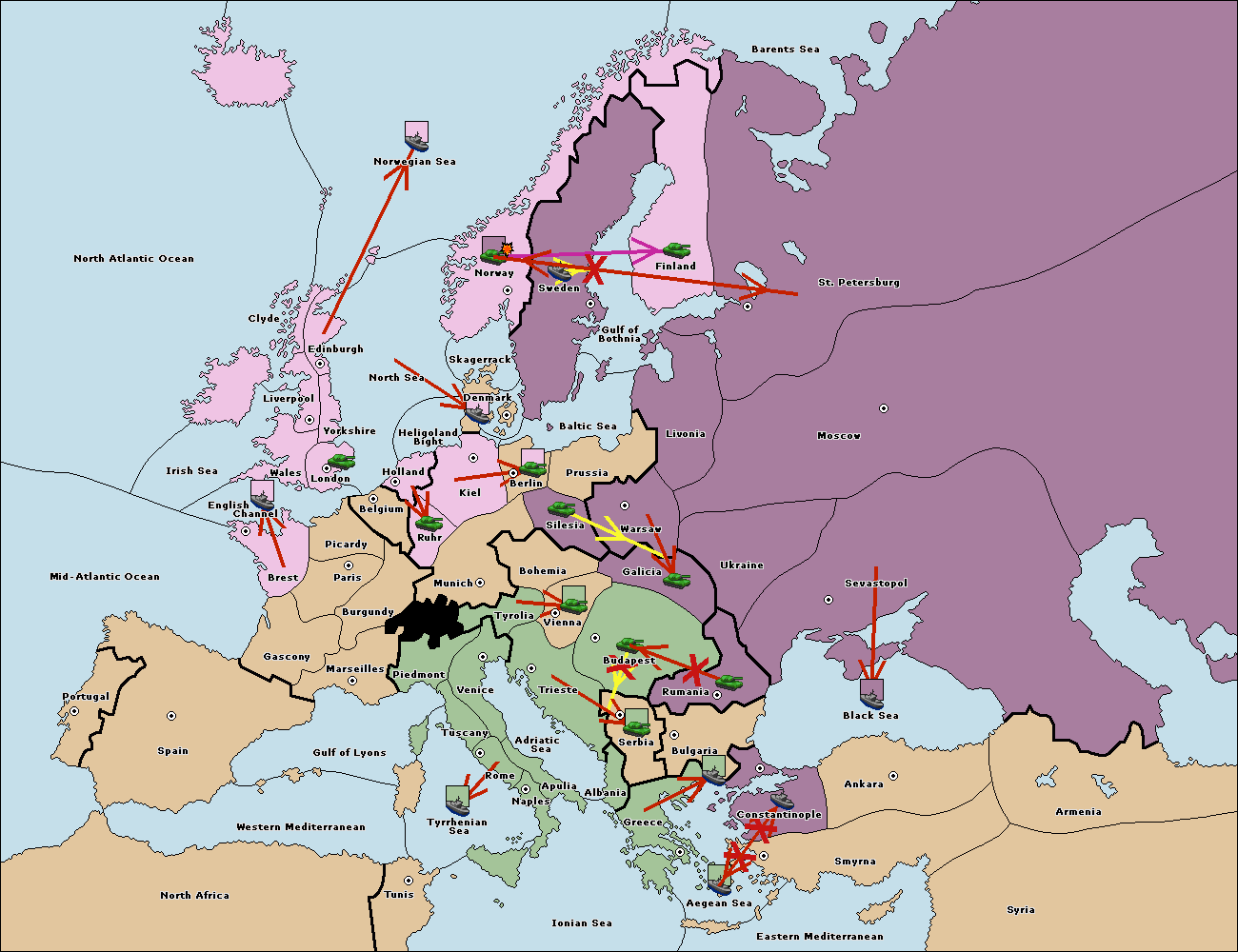 The fleet at Bulgaria (South Coast) support hold to Constantinople.