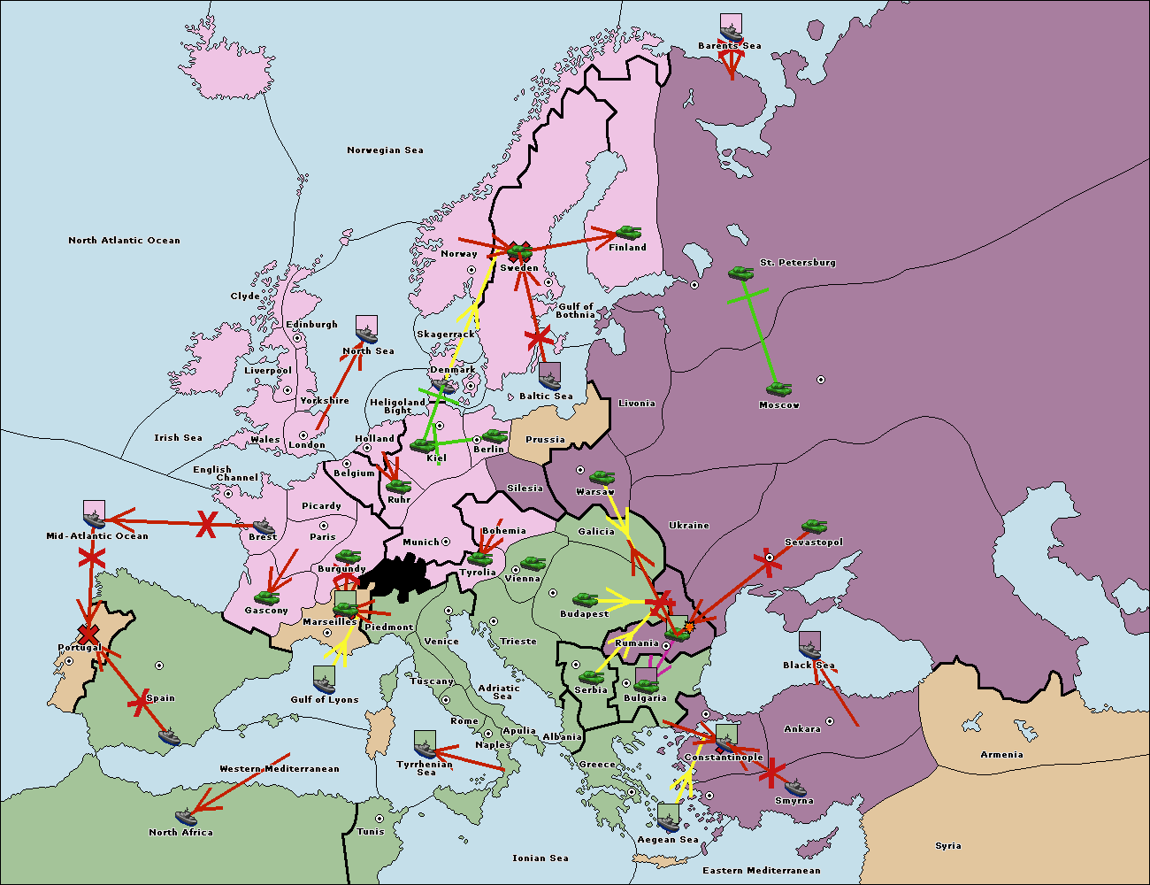 The fleet at Bulgaria (South Coast) move to Constantinople.