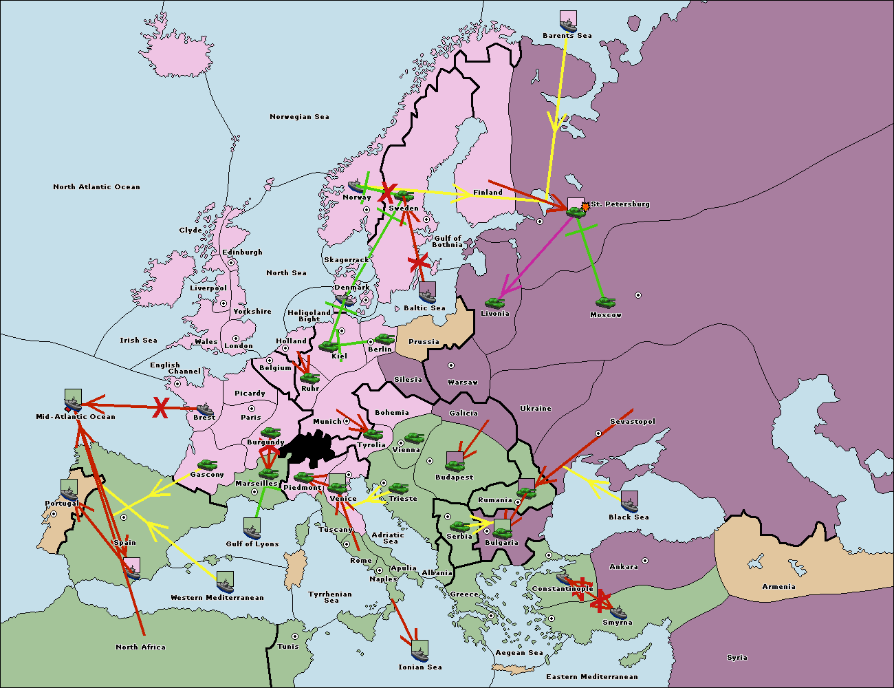 The fleet at Spain (South Coast) support hold to Marseilles.