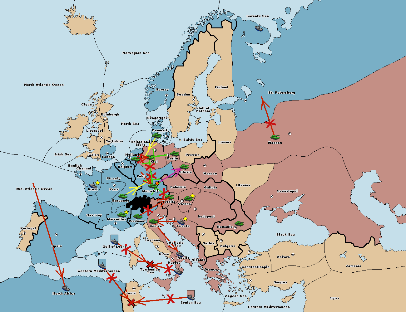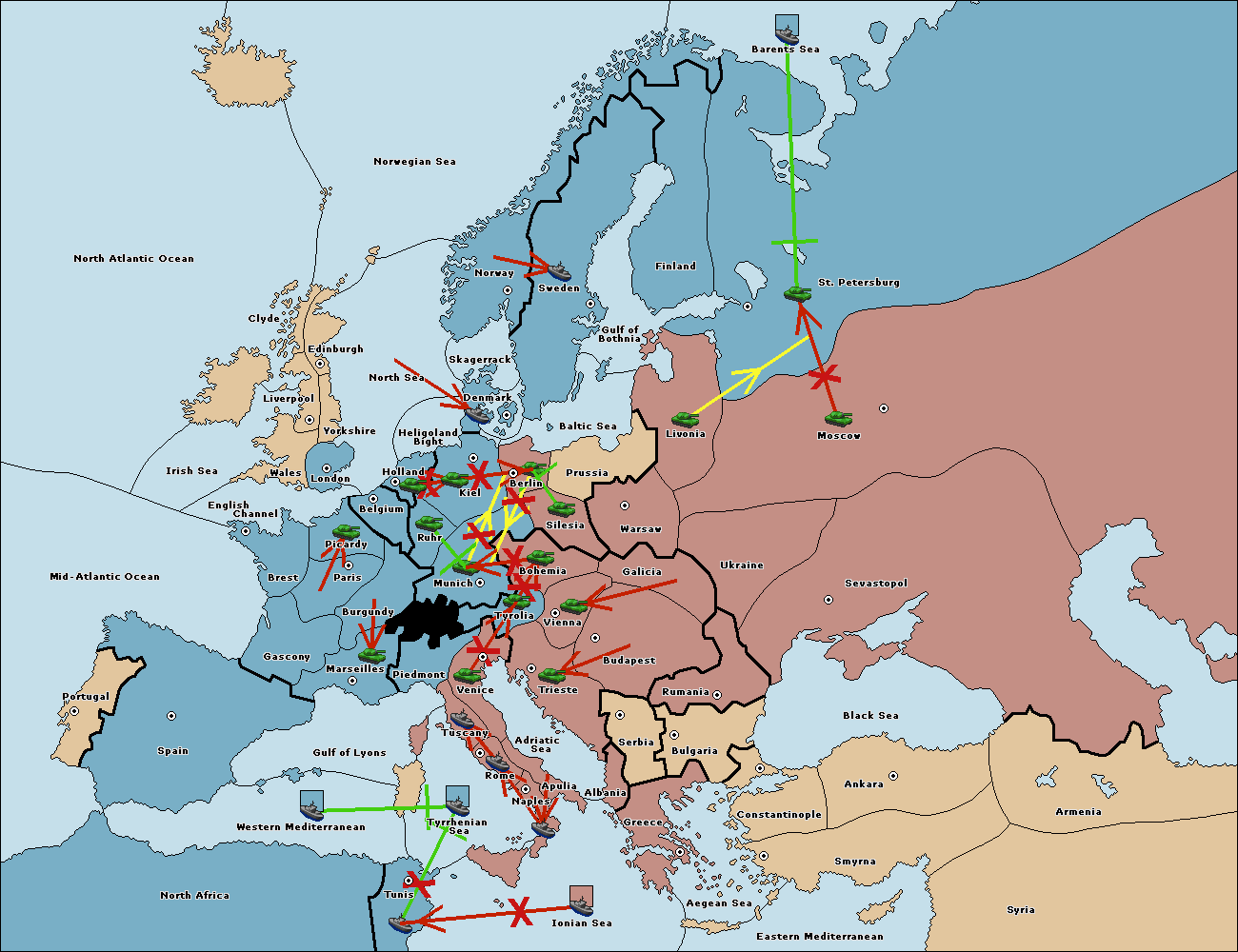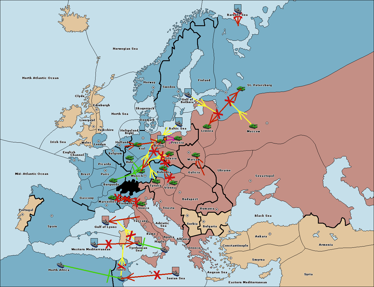 The fleet at Tyrrhenian Sea support hold to Tunis.