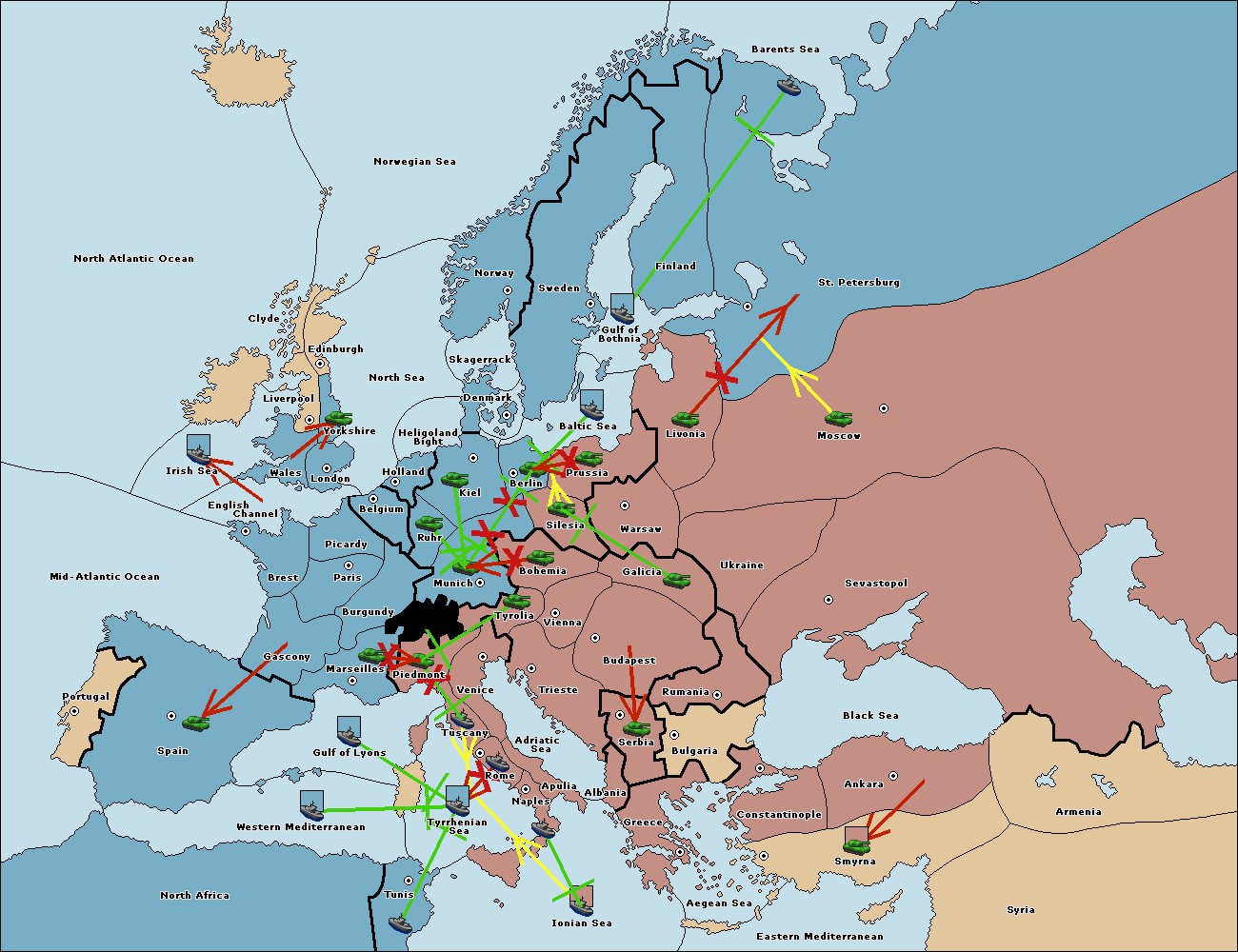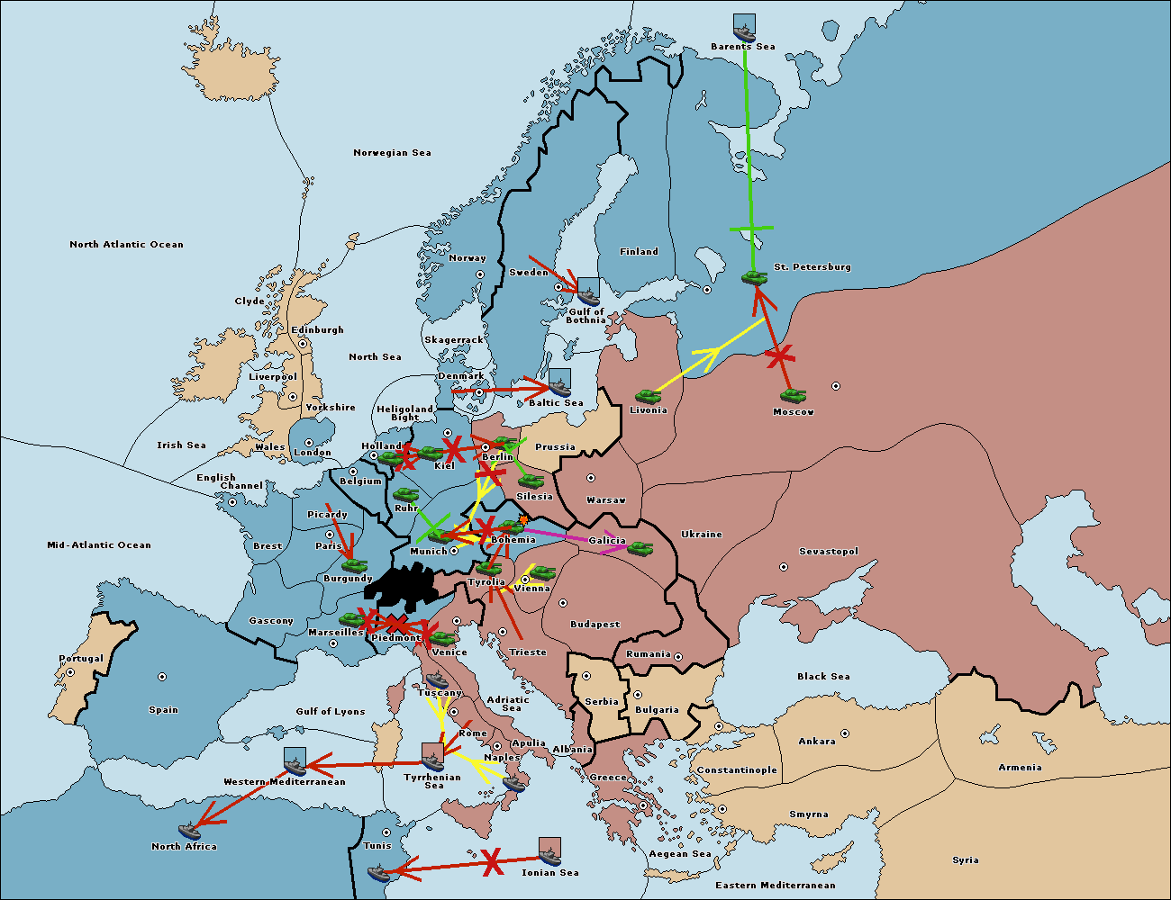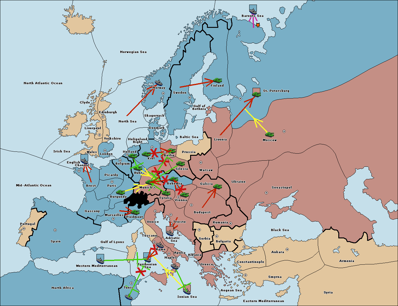 The fleet at Tyrrhenian Sea support hold to Tunis.