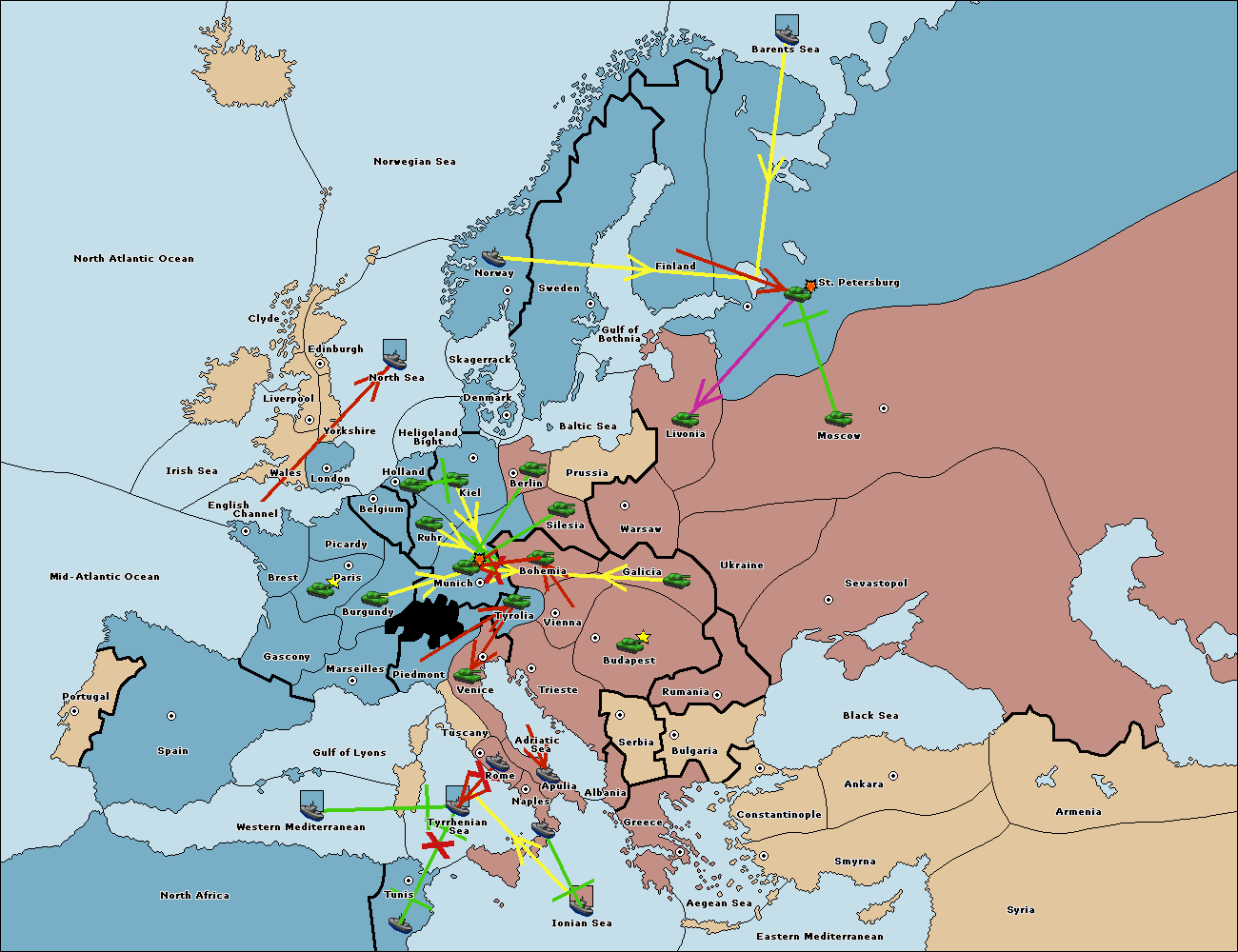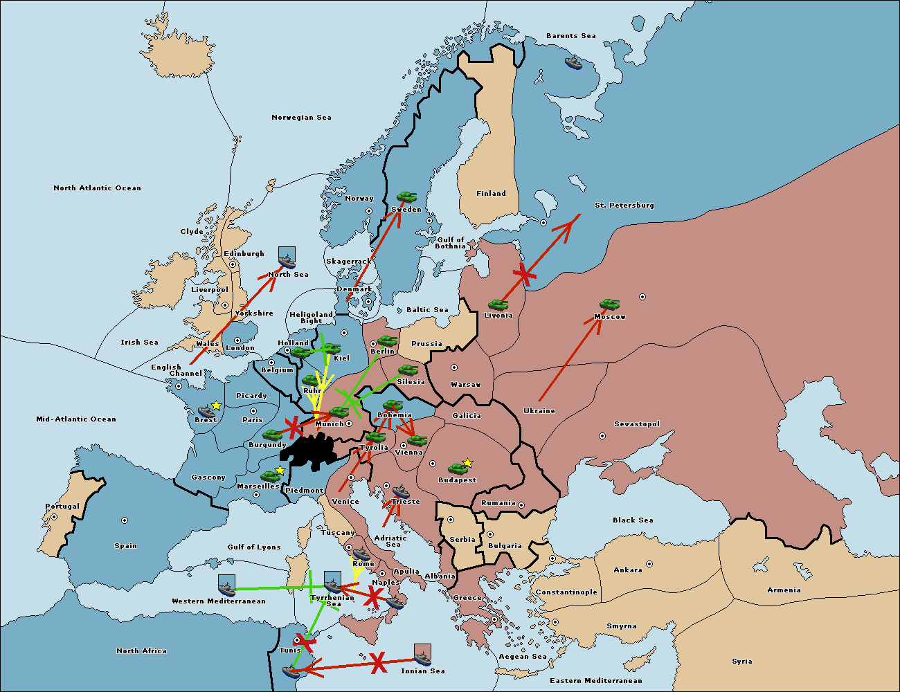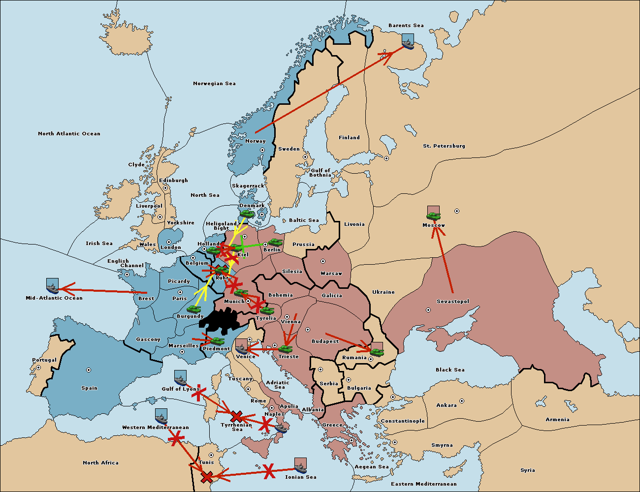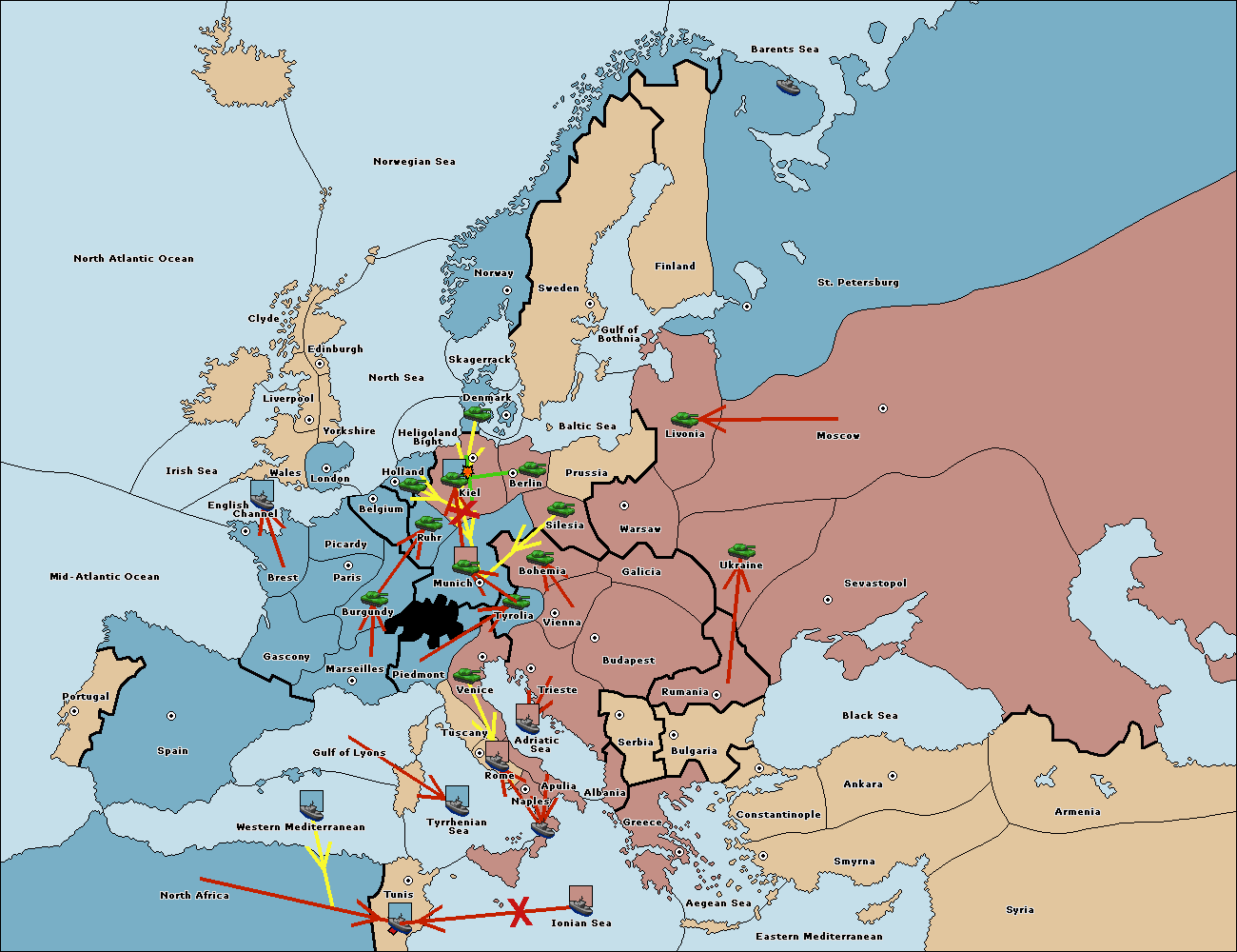 The army at Kiel support move to Munich from Tyrolia.