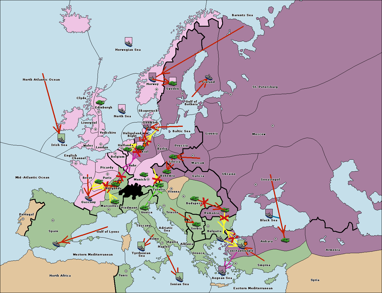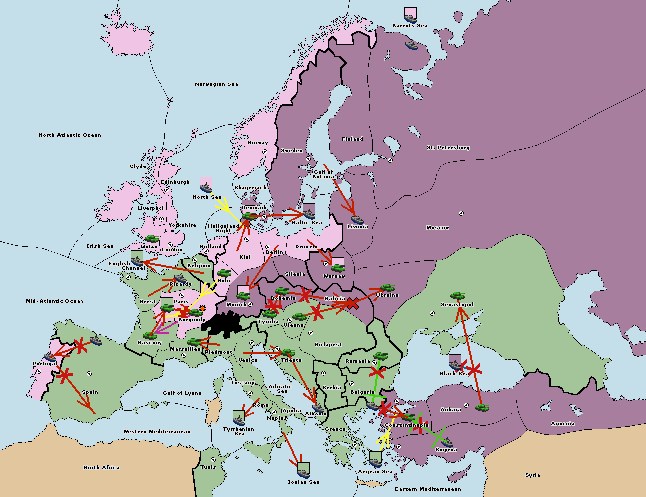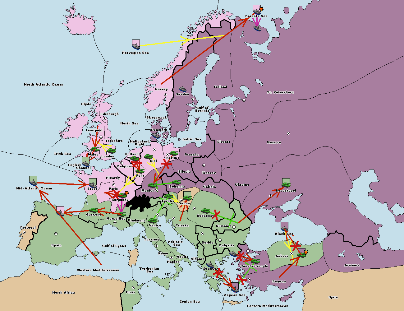 The fleet at Bulgaria (South Coast) support move to Constantinople from Smyrna.