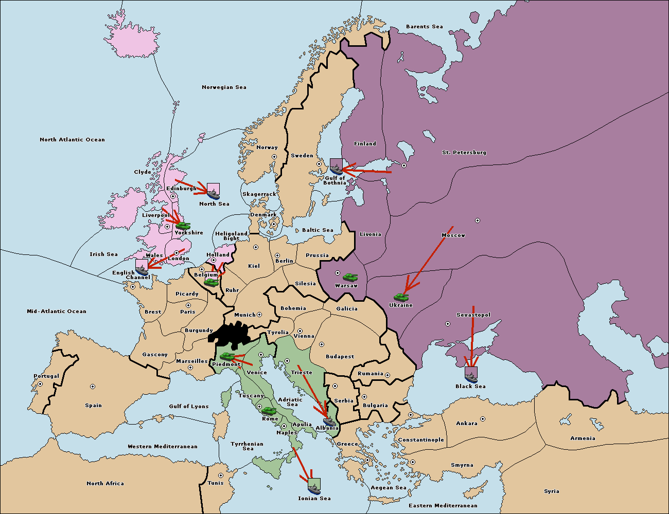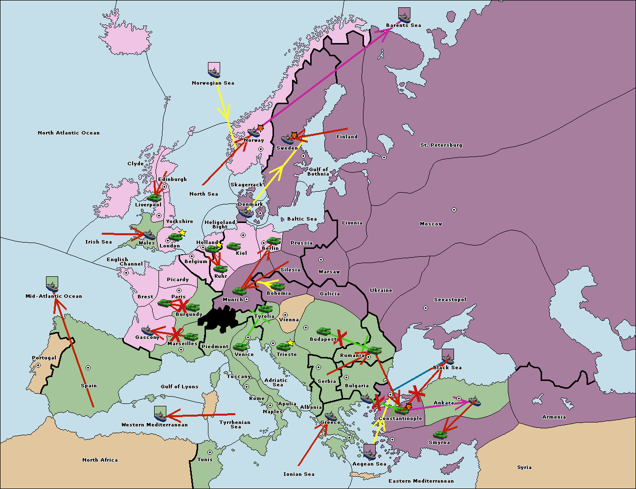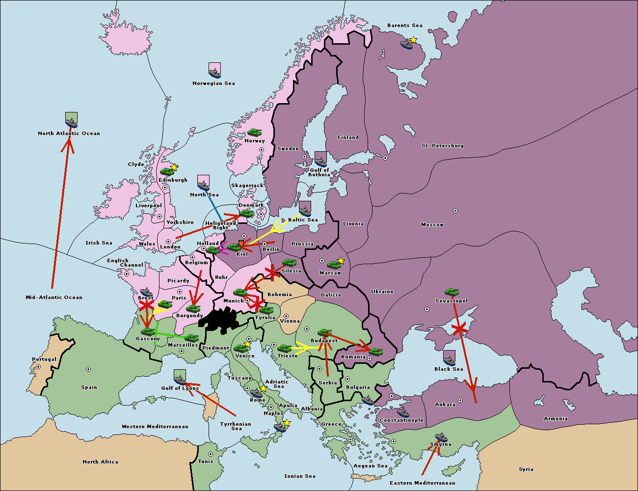 The fleet at Bulgaria (South Coast) support move to Constantinople from Smyrna.