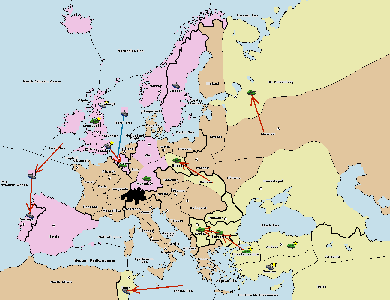The fleet at Spain (North Coast) move to Mid-Atlantic Ocean.