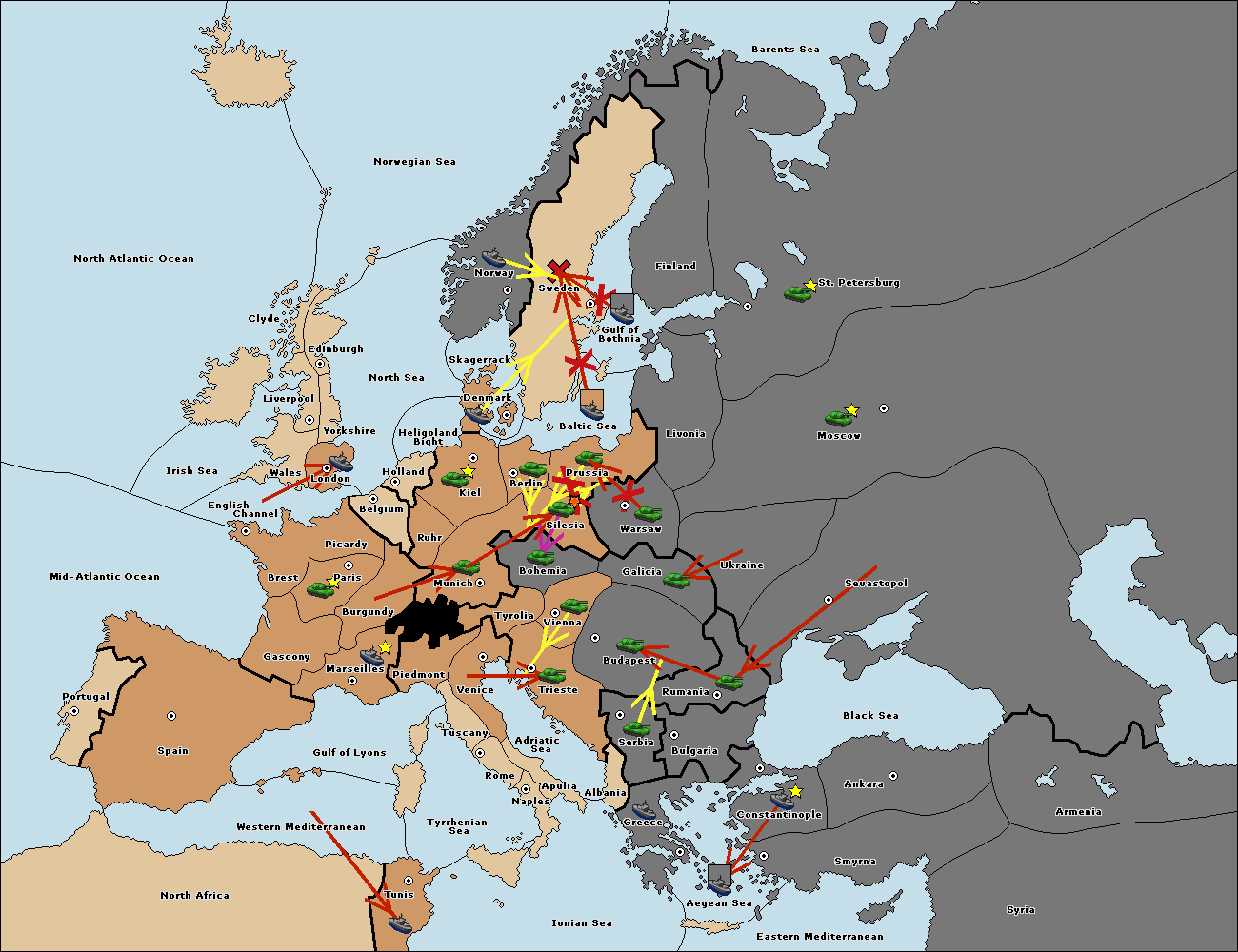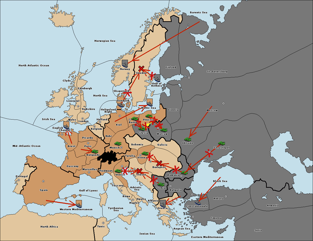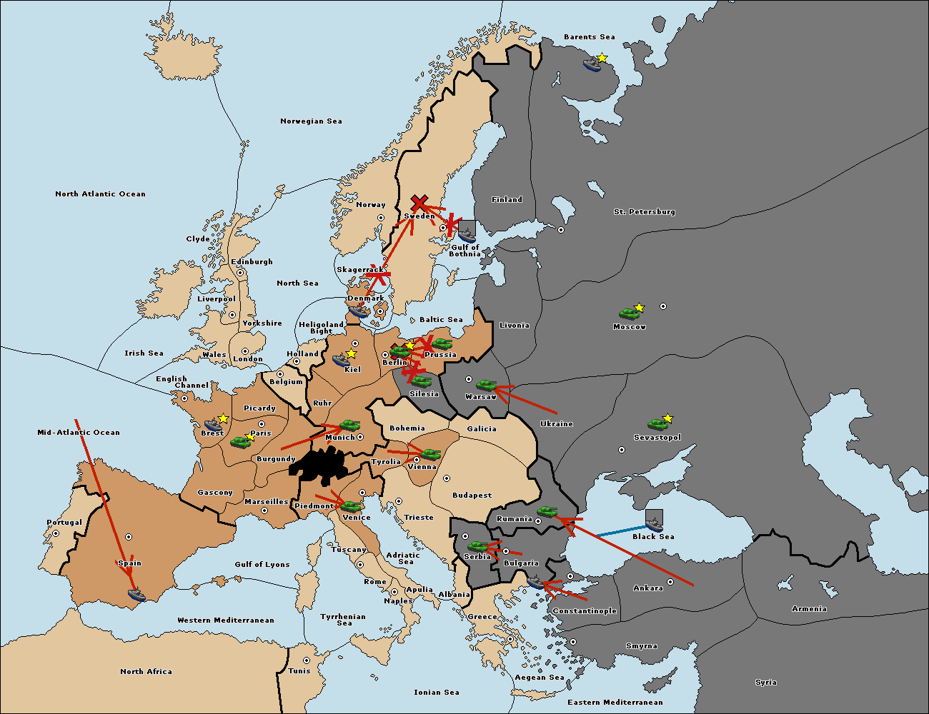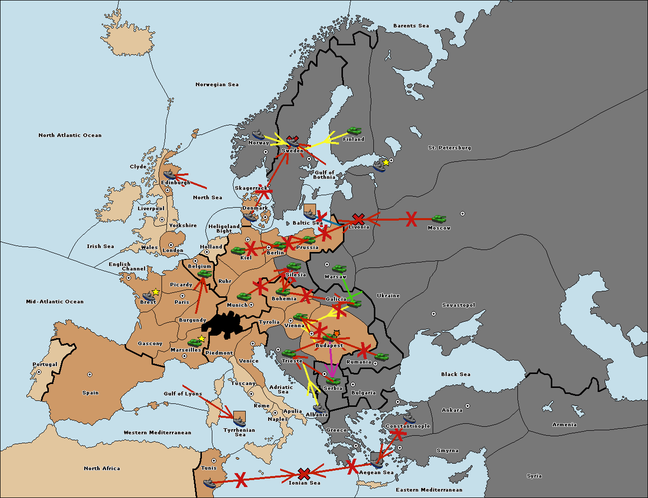 The fleet at Bulgaria (South Coast) move to Greece.