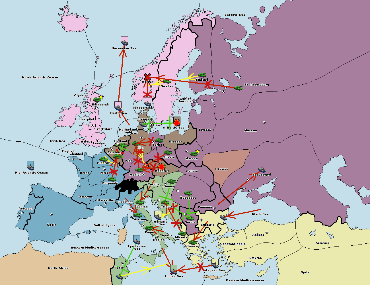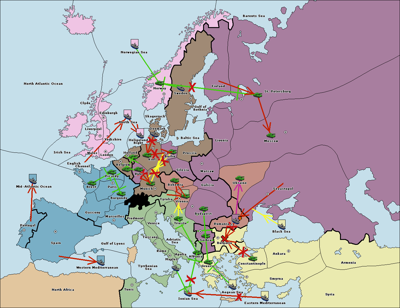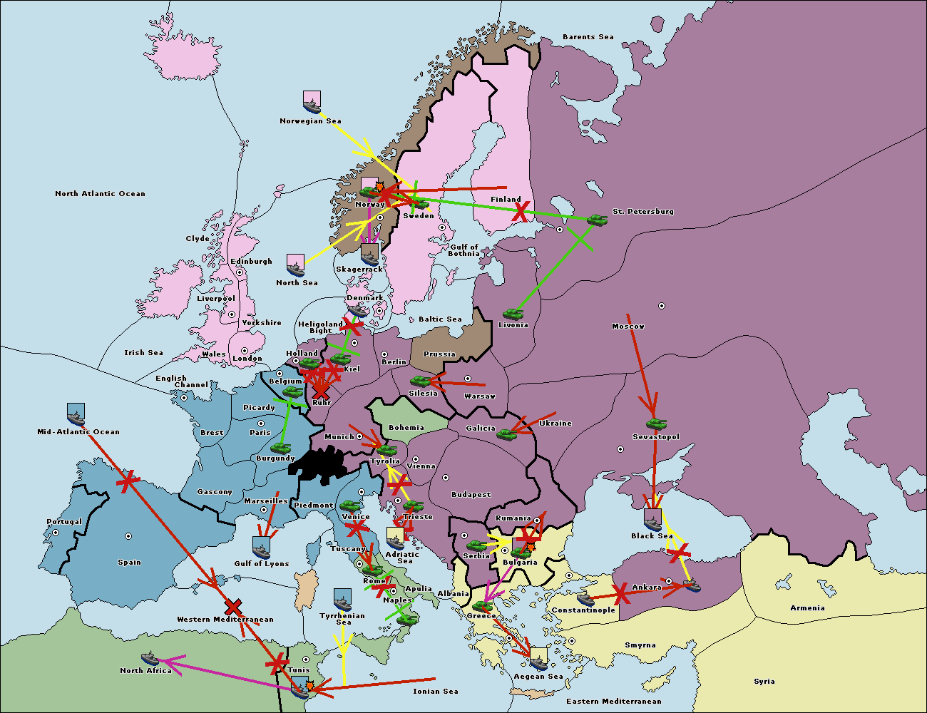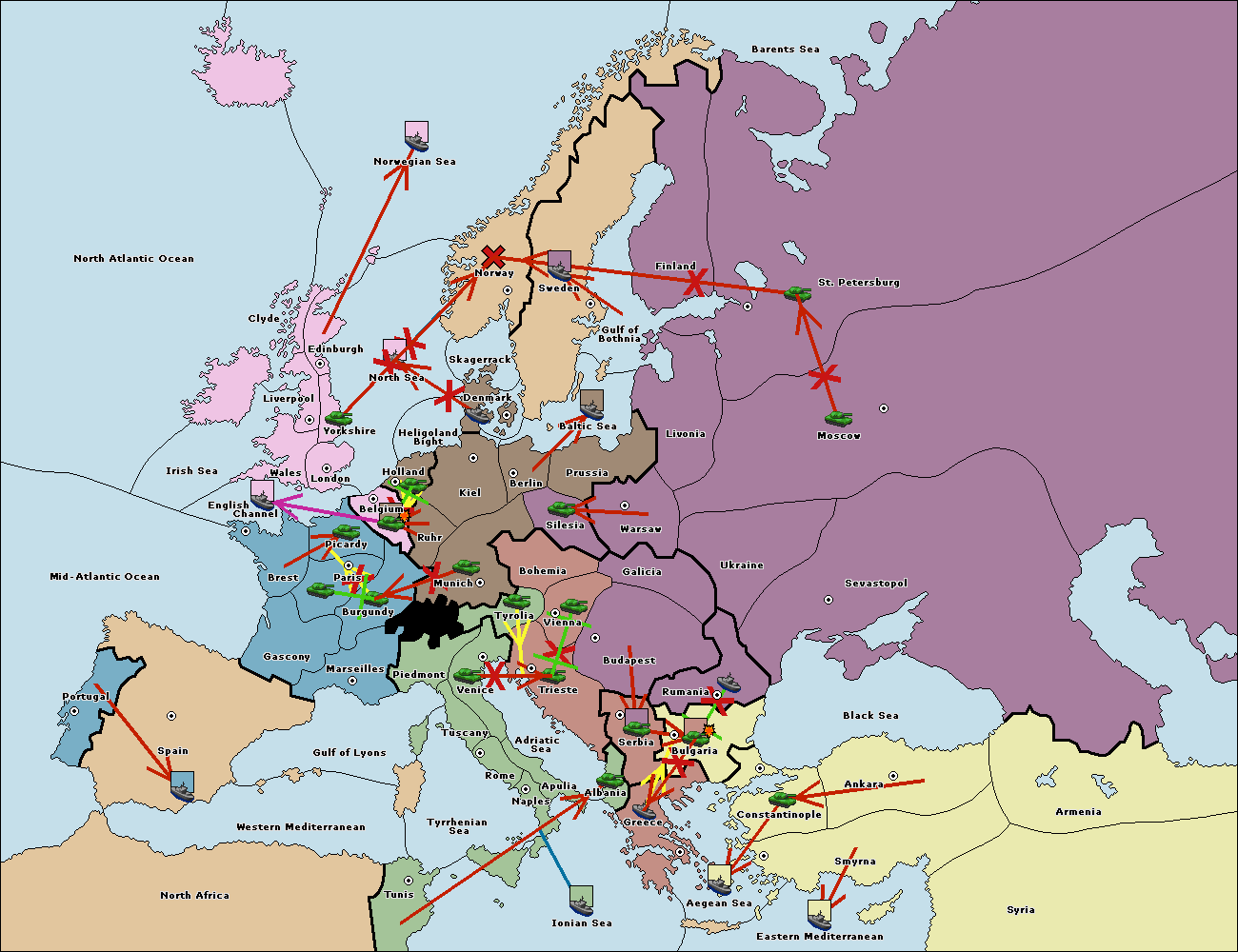 The fleet at Rumania support move to Bulgaria from Constantinople.