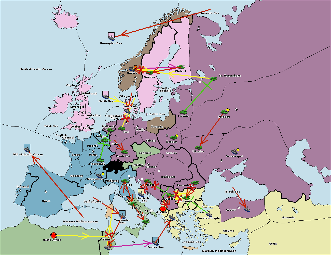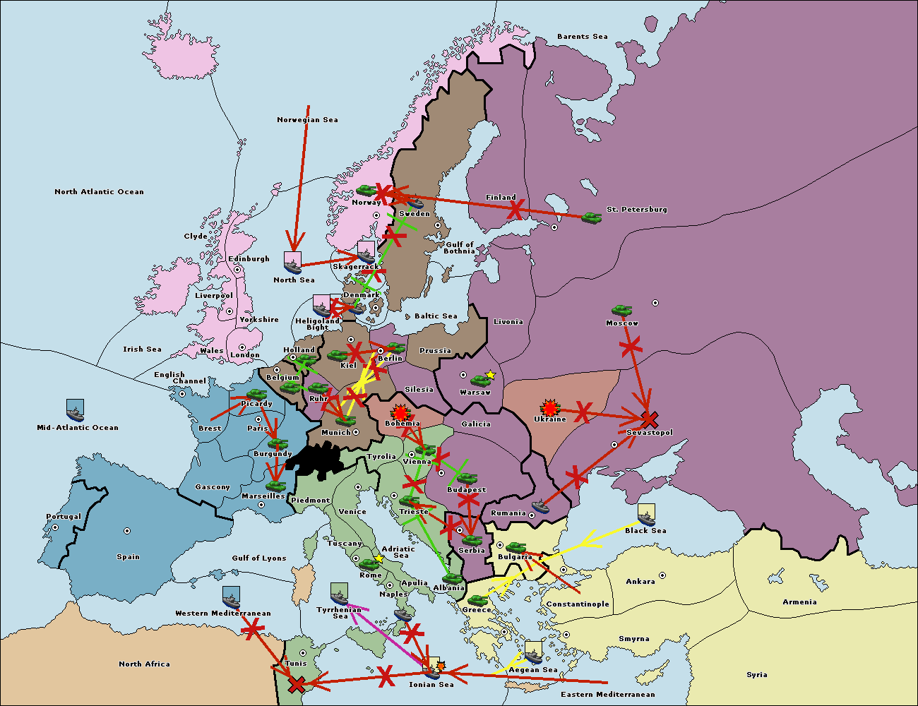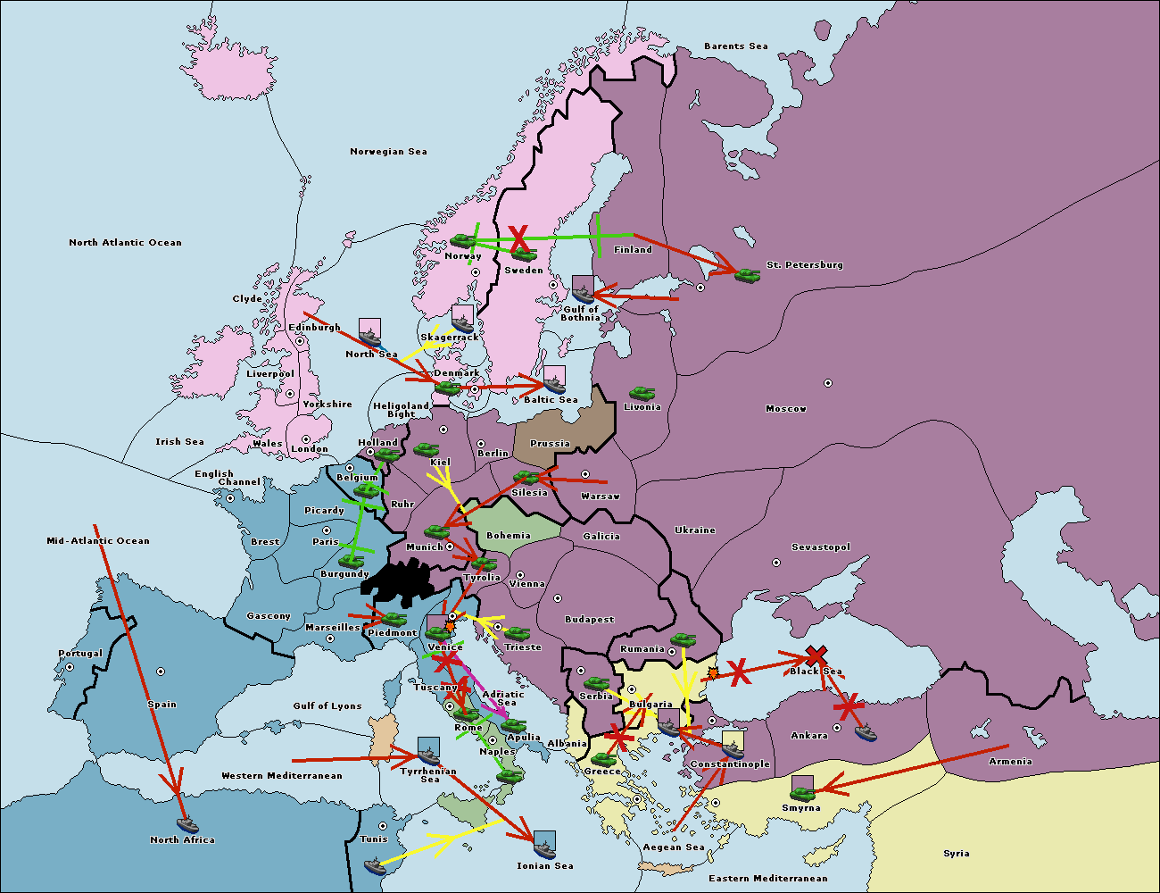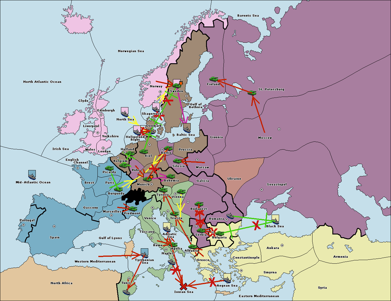 The fleet at Rumania support move to Bulgaria from Constantinople.