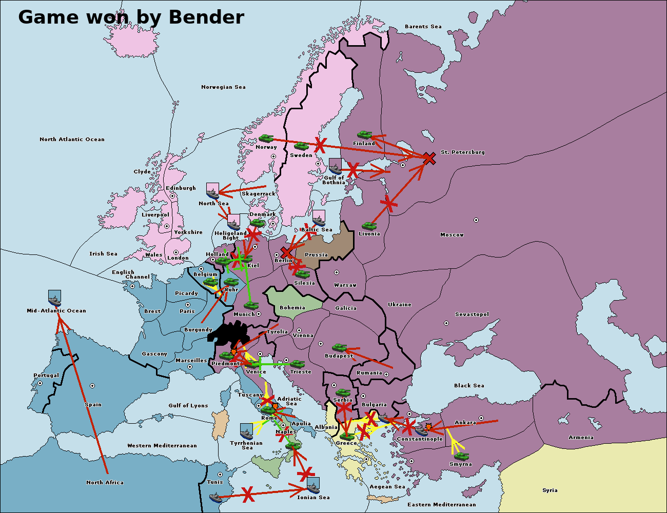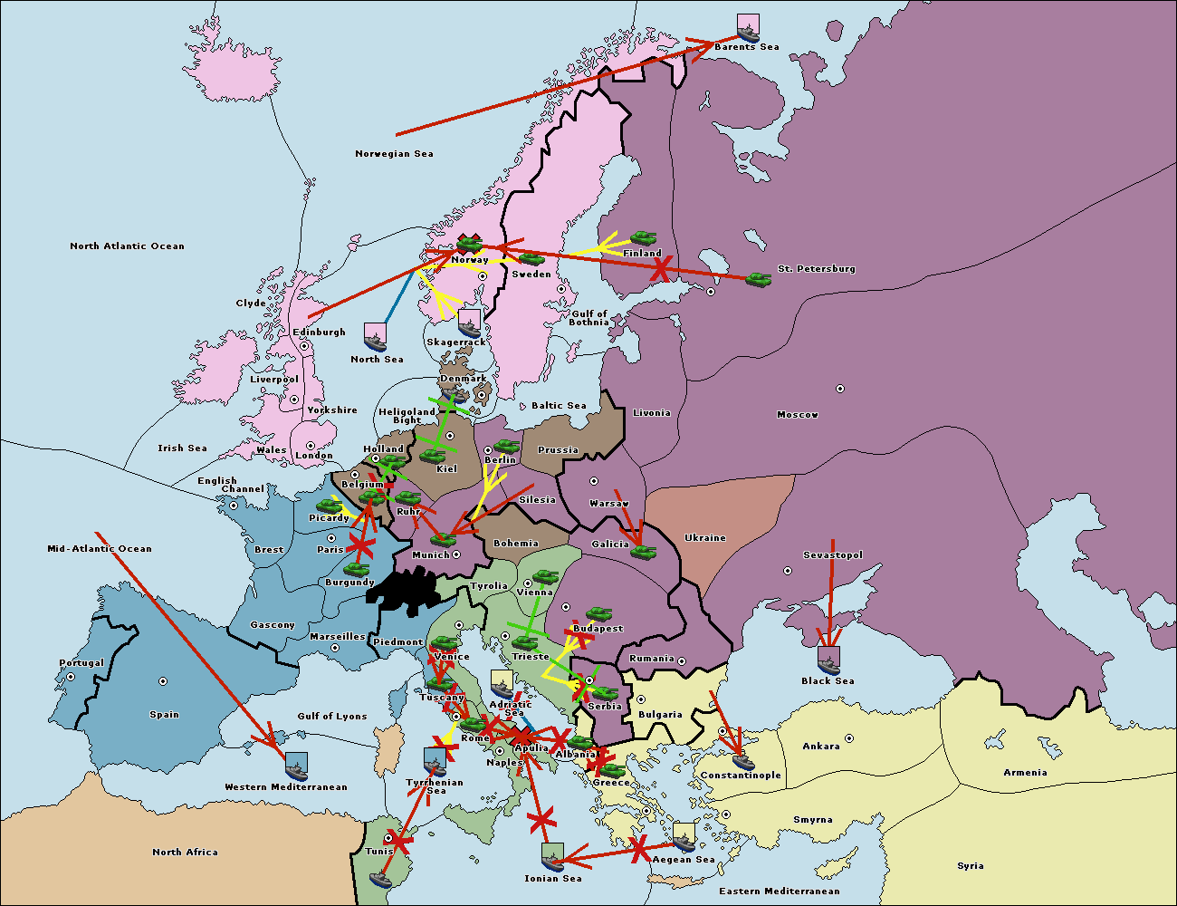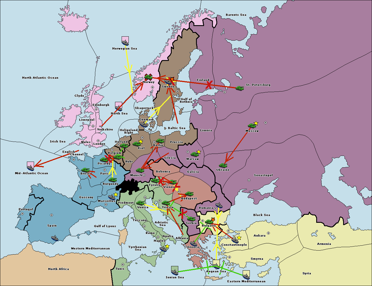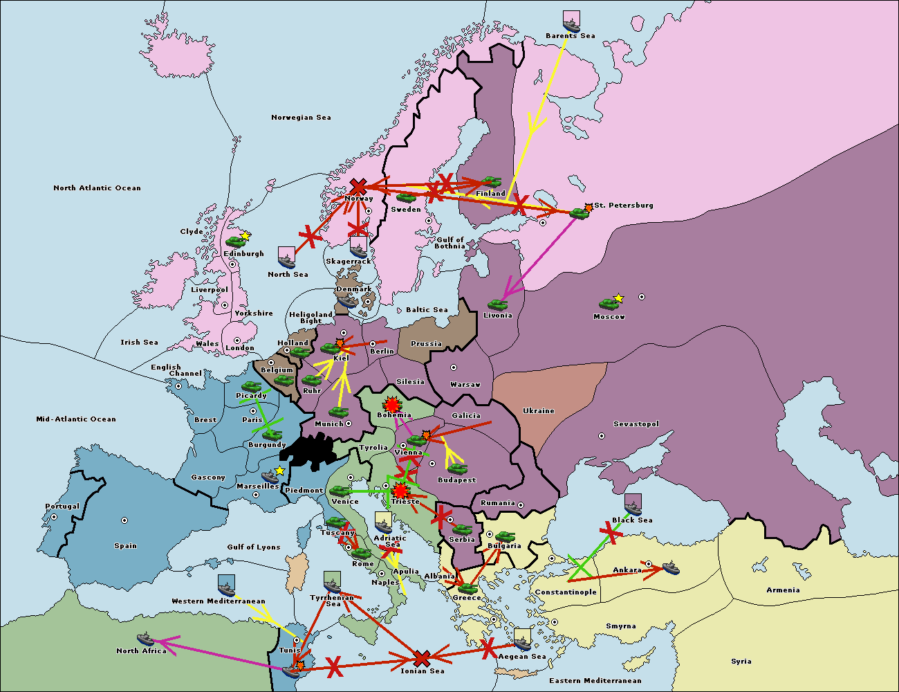 The fleet at Rumania support move to Bulgaria from Constantinople.