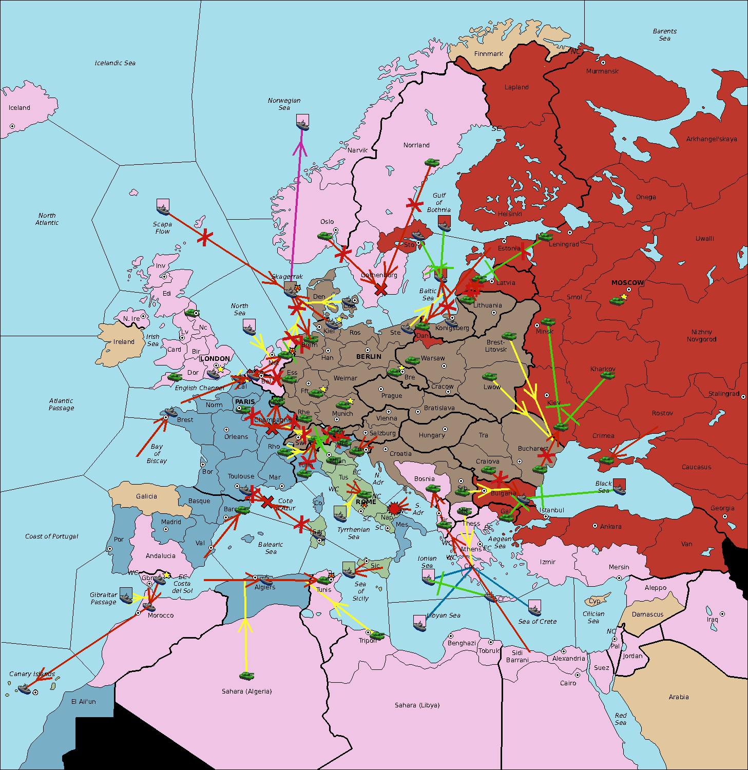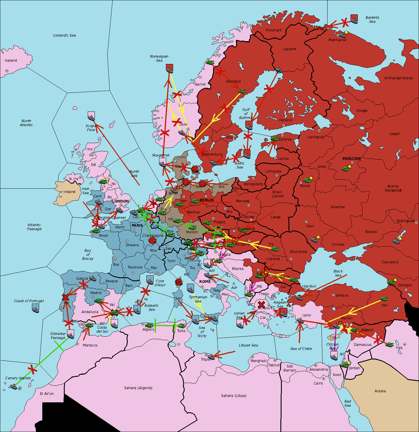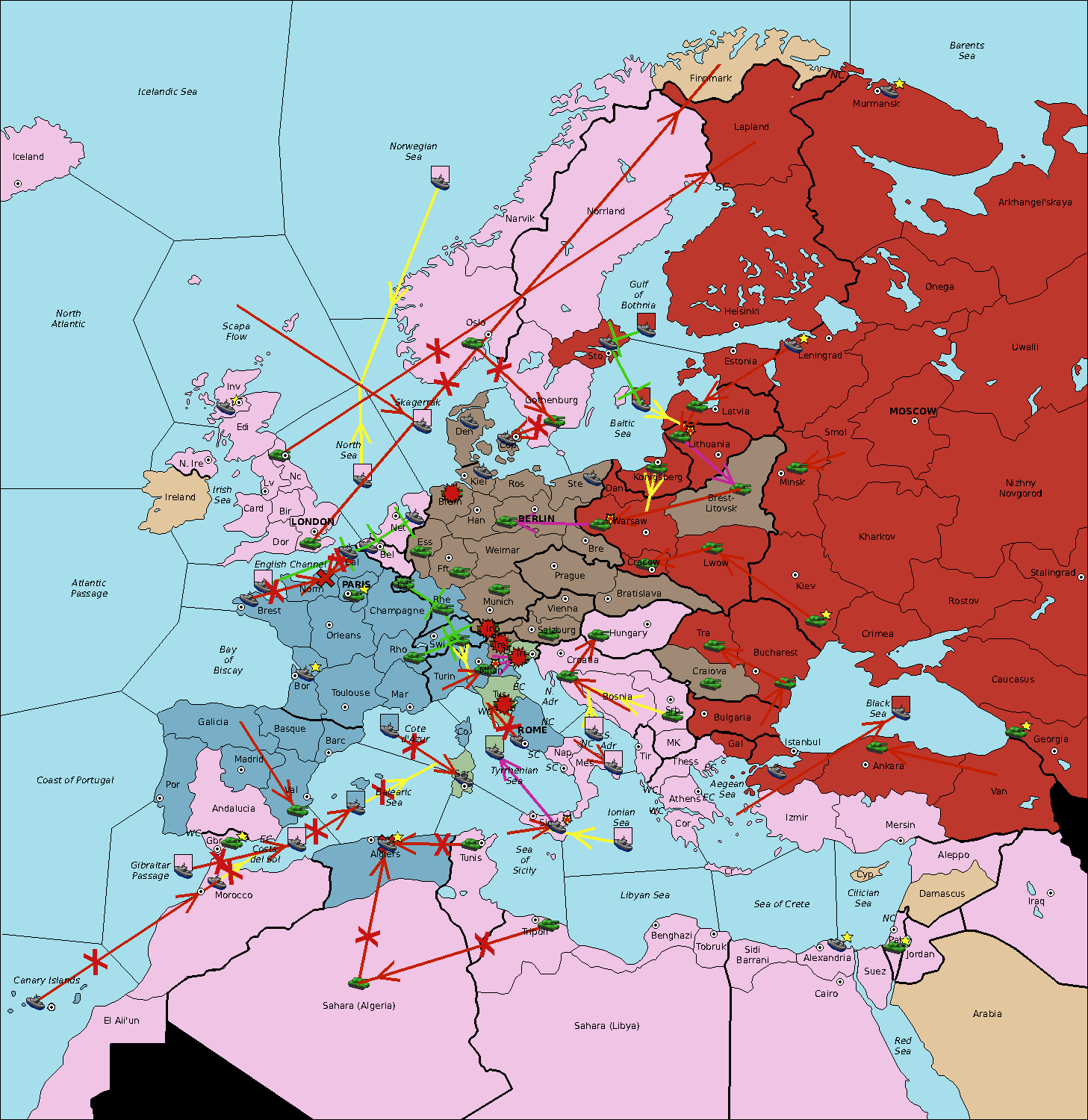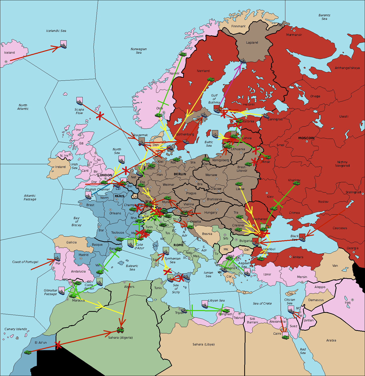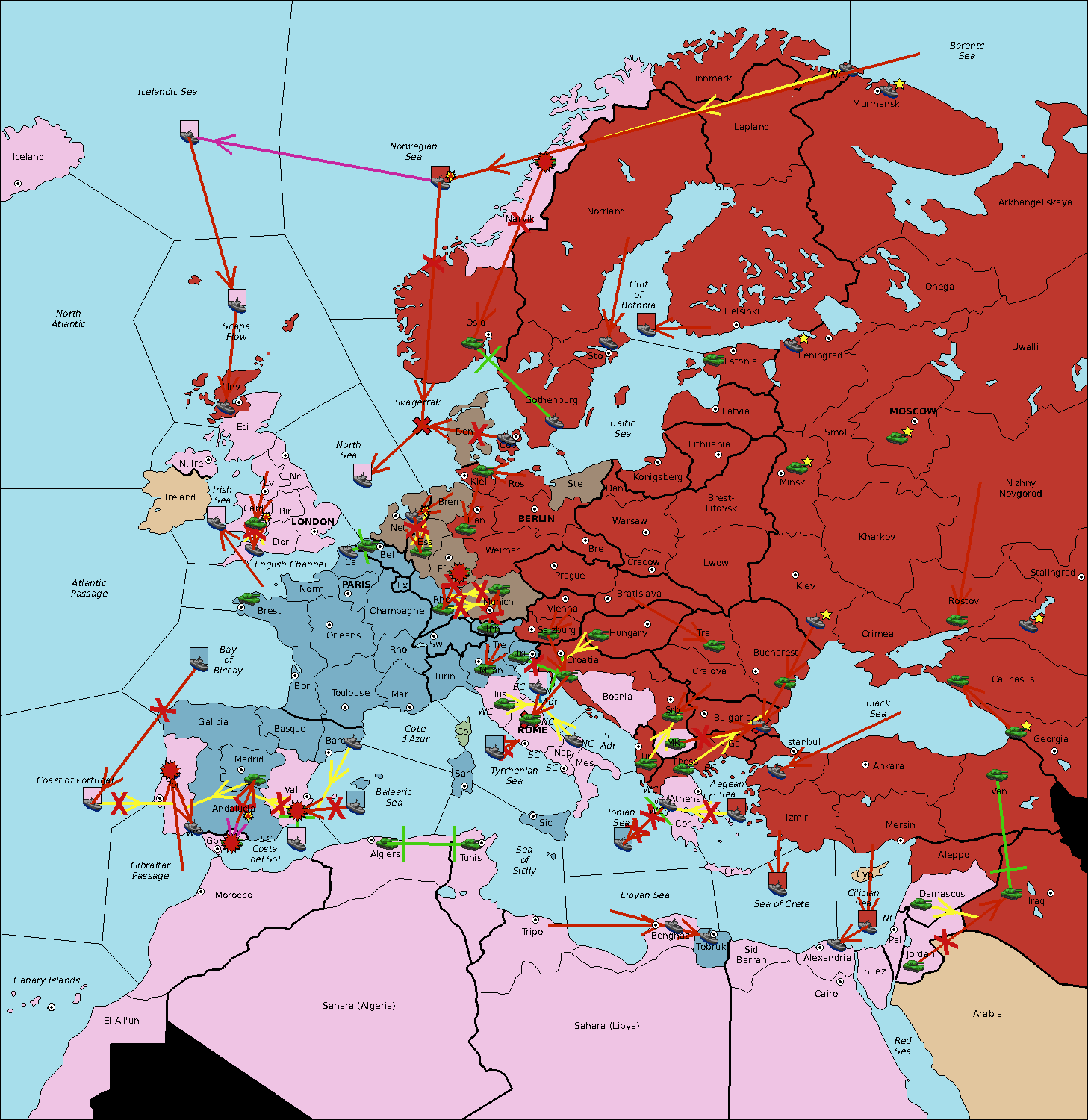 The fleet at Sardinia move to Tyrrhenian Sea.