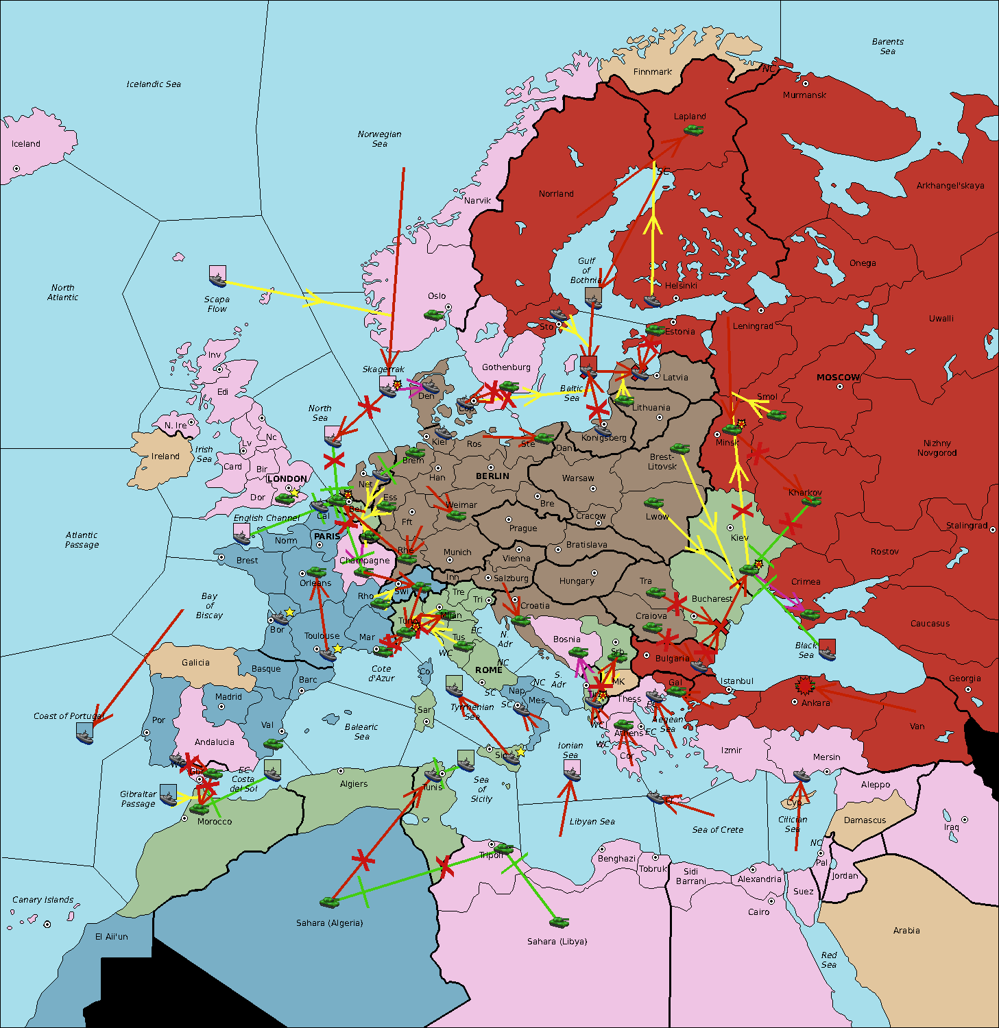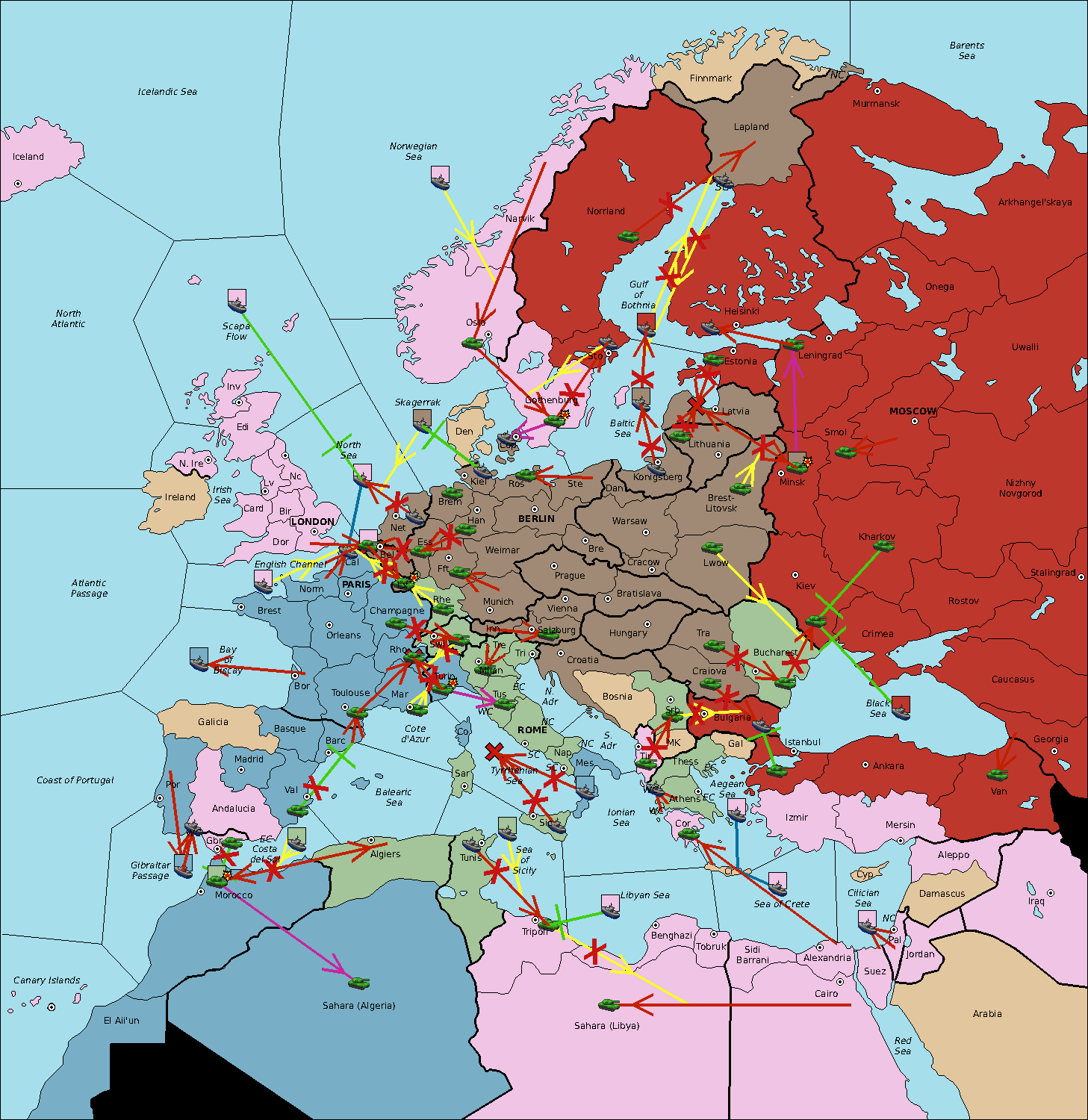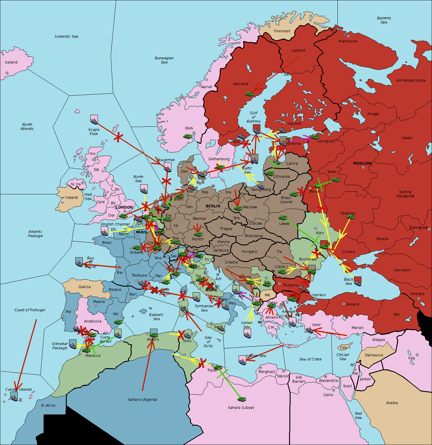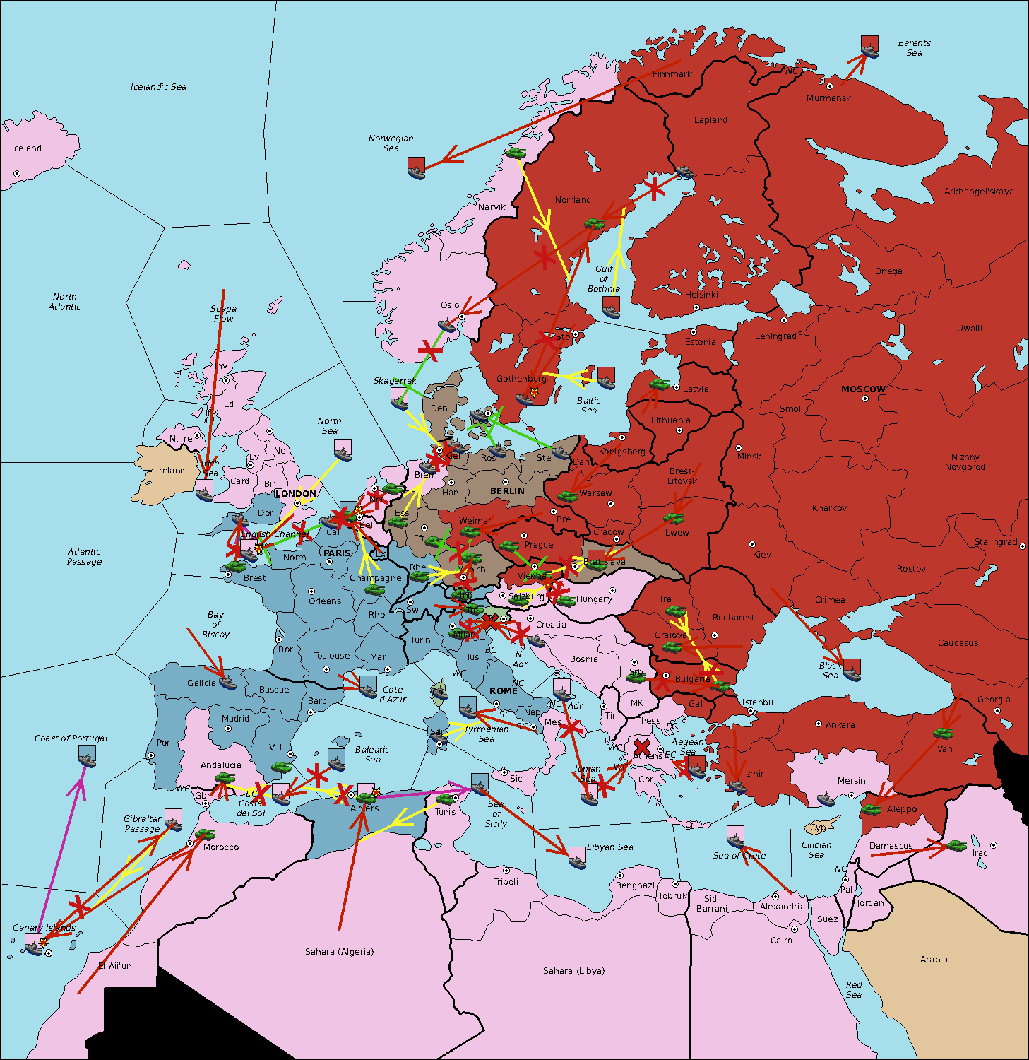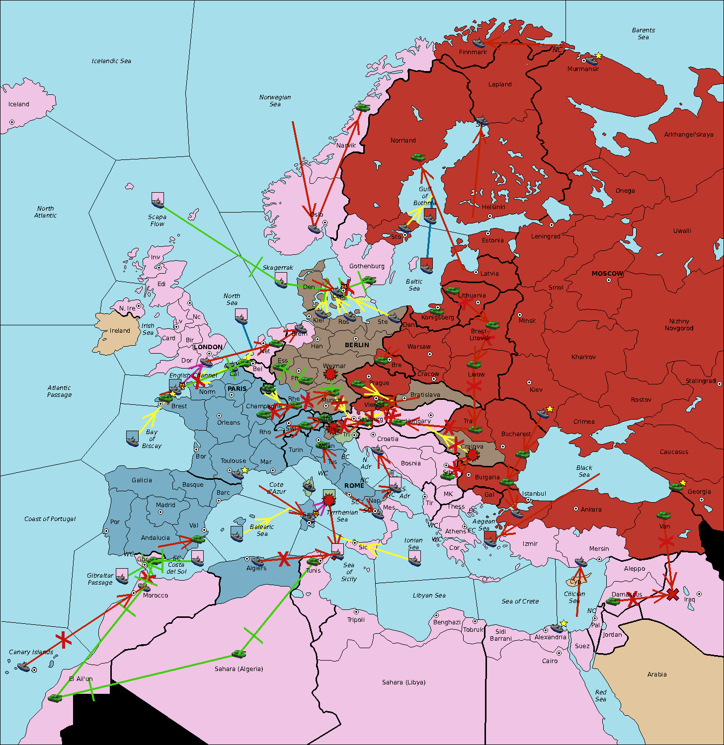 The fleet at Sardinia move to Tyrrhenian Sea.