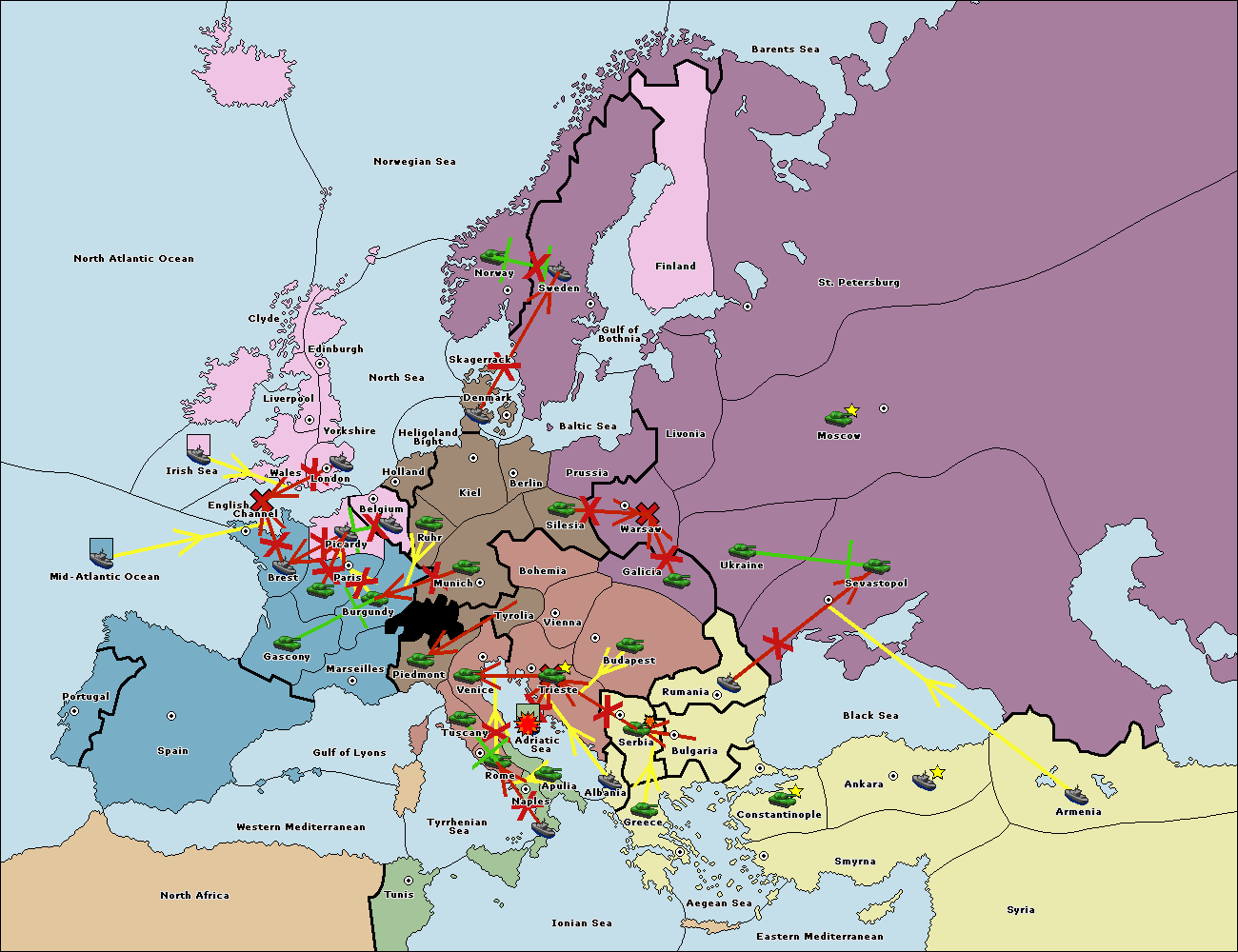 На сервере установлен новый вариант 1900. Вариация классического варианта с исторически более достоверной картой, интересными спецправилами и еще большим взаимодействием между всеми семью державами. Приятной игры! - Flame.