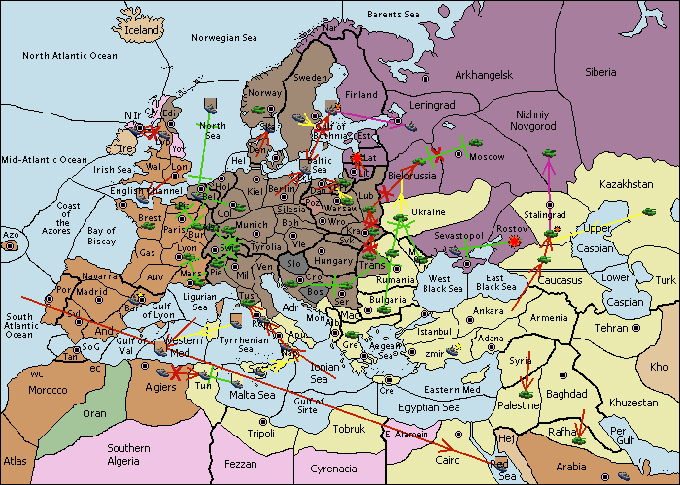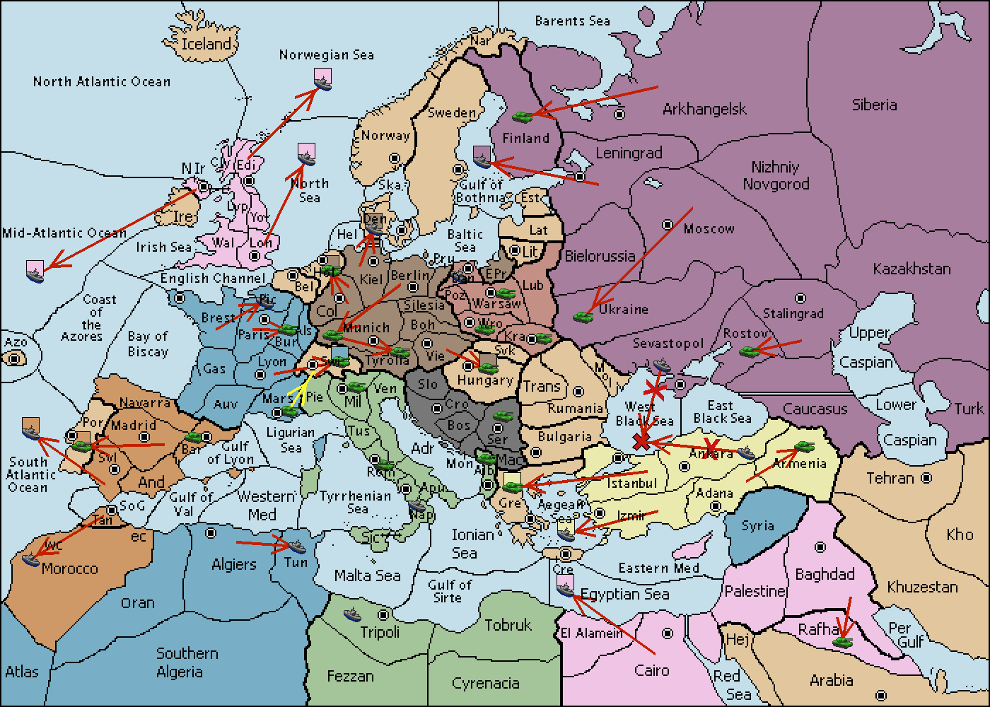 Europe 1939, Очки за центры, Как в правилах, Анонимная, С выбором страны, Скрытое голосование за ничью