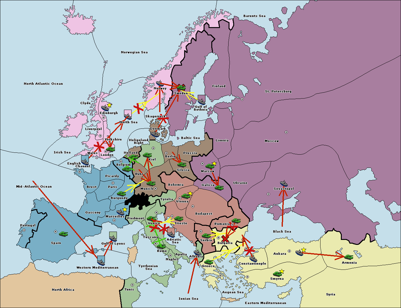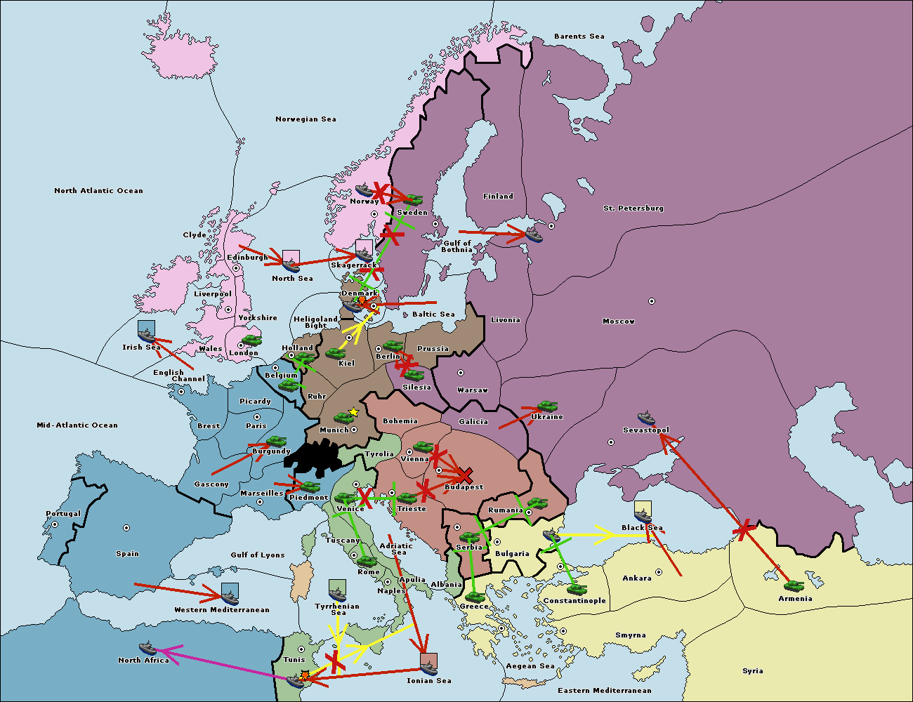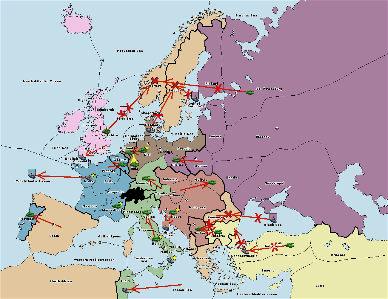 The fleet at Mid-Atlantic Ocean move to Western Mediterranean.