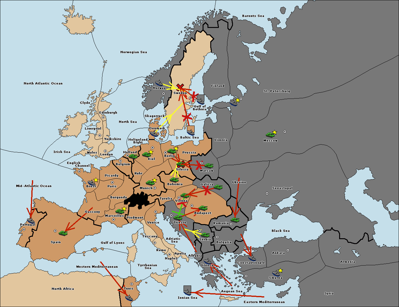 The fleet at Bulgaria (North Coast) move to Constantinople.