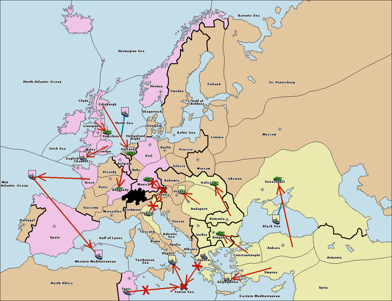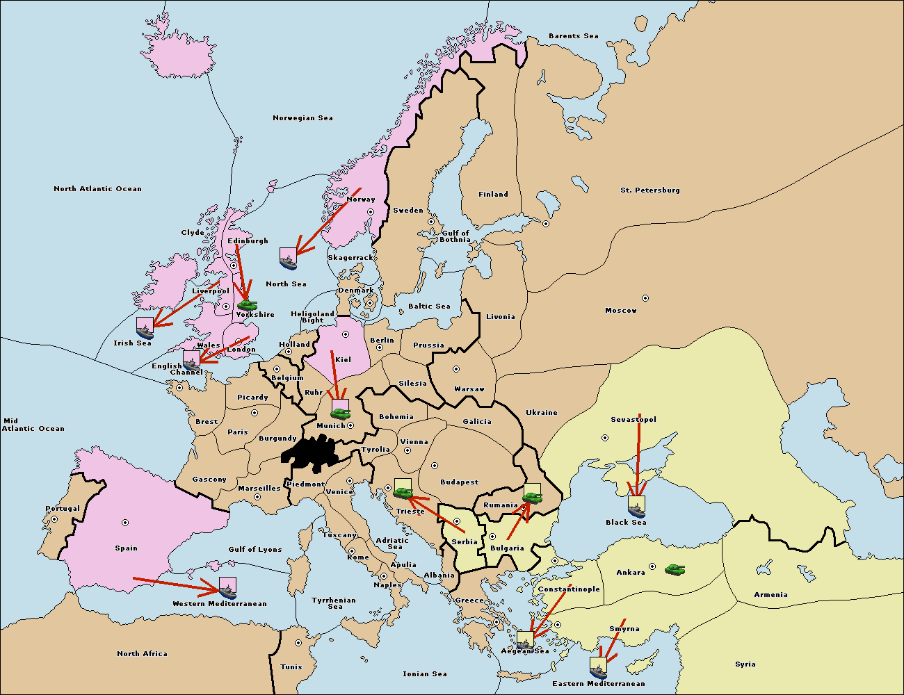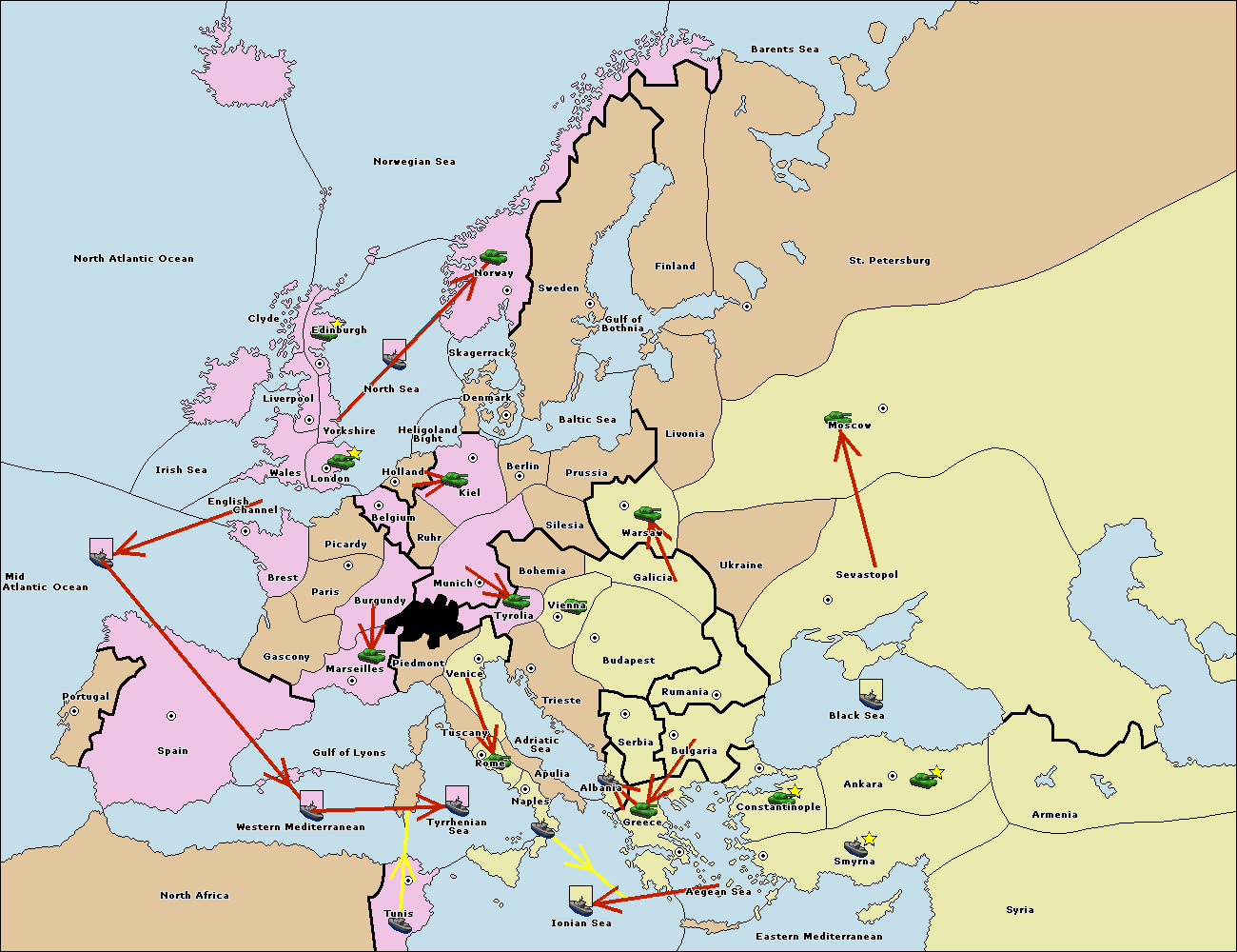 The fleet at Mid-Atlantic Ocean move to Western Mediterranean.