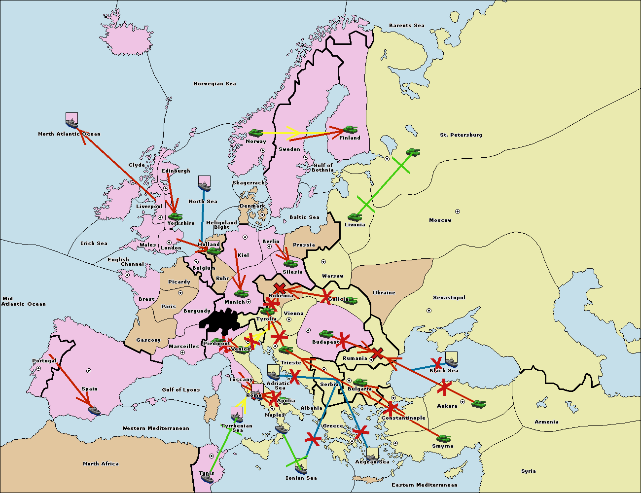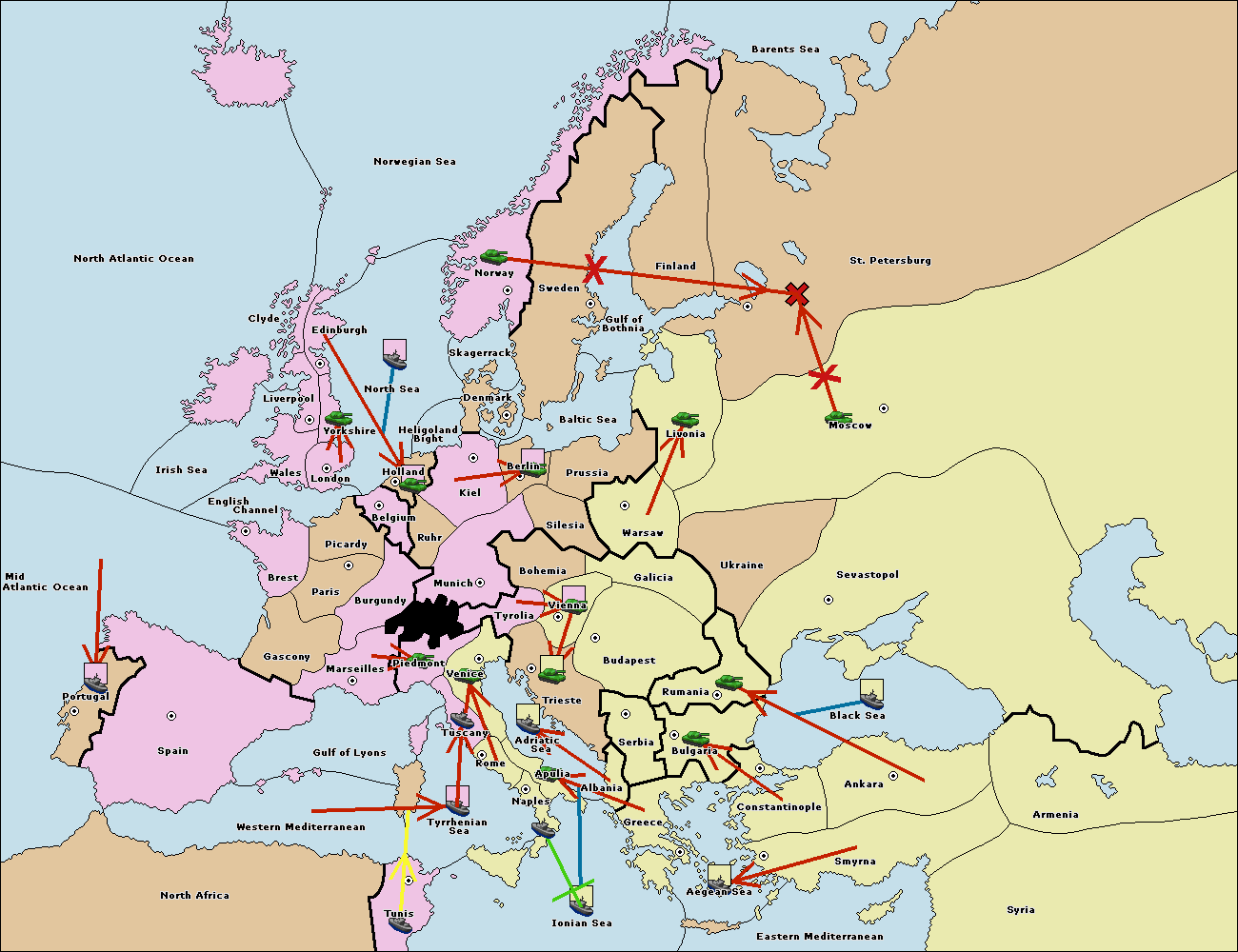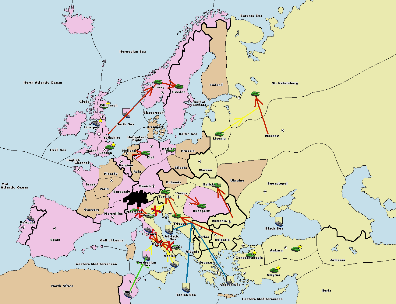 The fleet at Mid-Atlantic Ocean move to Western Mediterranean.